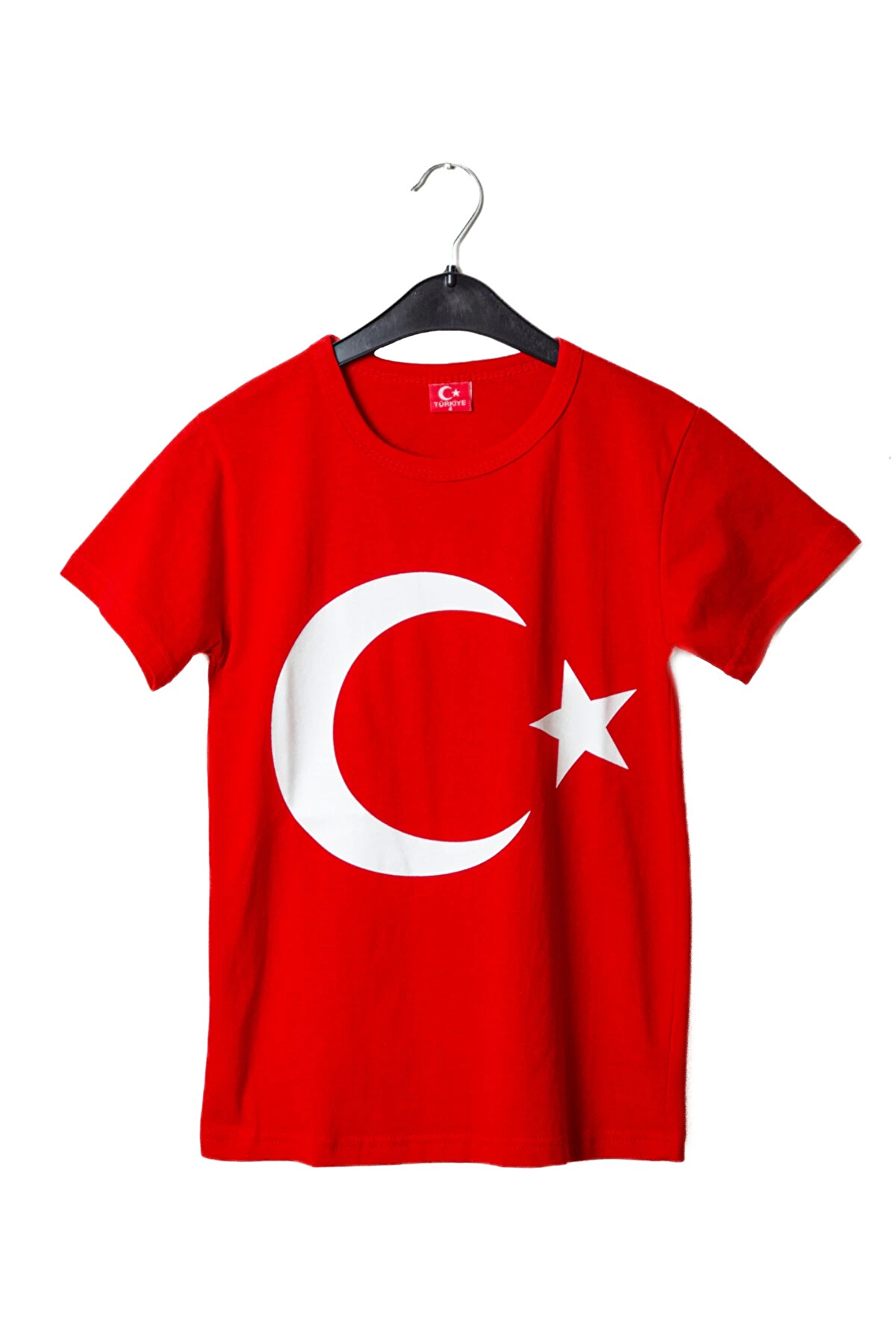 Kisa Kollu Dijital Baskili Kirmizi Beyaz Ayyildiz Cocuk Tisort