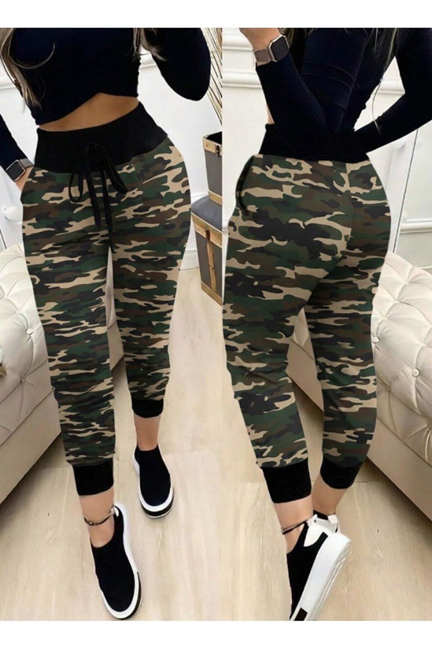 JARDİN ALLURE EQURİ Kadın Yüksek Bel Bağcıklı Desenli Iki Iplik Pantolon