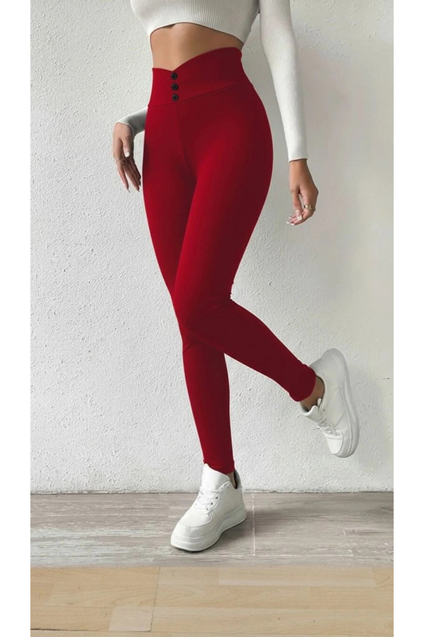 Kadın Yüksek Bel önden Düğmeli Dalgıç Tayt