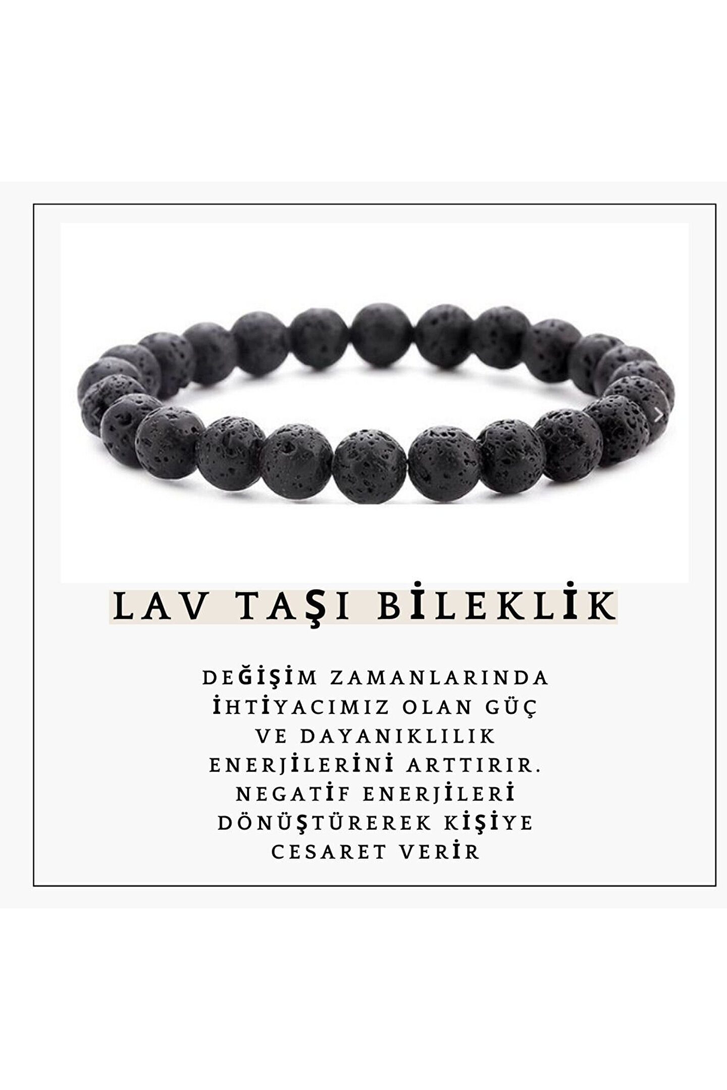 Lav taşı volkanik olaylar nedeni ile yeryüzüne ulaşan özel bir taştır.Lav taşı mineraller açısından oldukça zengindir.Lav taşı içerisinde çinko,kalsiyum,magnezyum ve potasyum gibi mineraller yer almaktadır.Alternatif tıp tarafından sıkça kullanılan bir taştır lav taşı vücuda temas ettiği zaman bir çok rahatsızlığa iyi gelmektedir.Topraklama enerjisine sahip olan lav taşı kök çakranın dengelenmesine iyi gelir. ; Duygusal ve ruhsal dengeyi sağlarken zihne iyi gelen gerekli bir taş türüdür ; Gün içerisinde kişiye enerji verir ; Negatif enerjiyi yok ederken pozitif enerjiyi ortaya çıkartır ; Dinginlik ve huzur hissi verir ; Stresten arındırıcı bir etki sağlar;