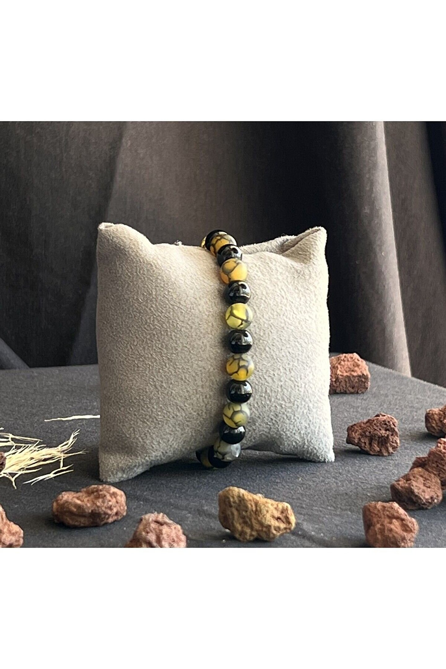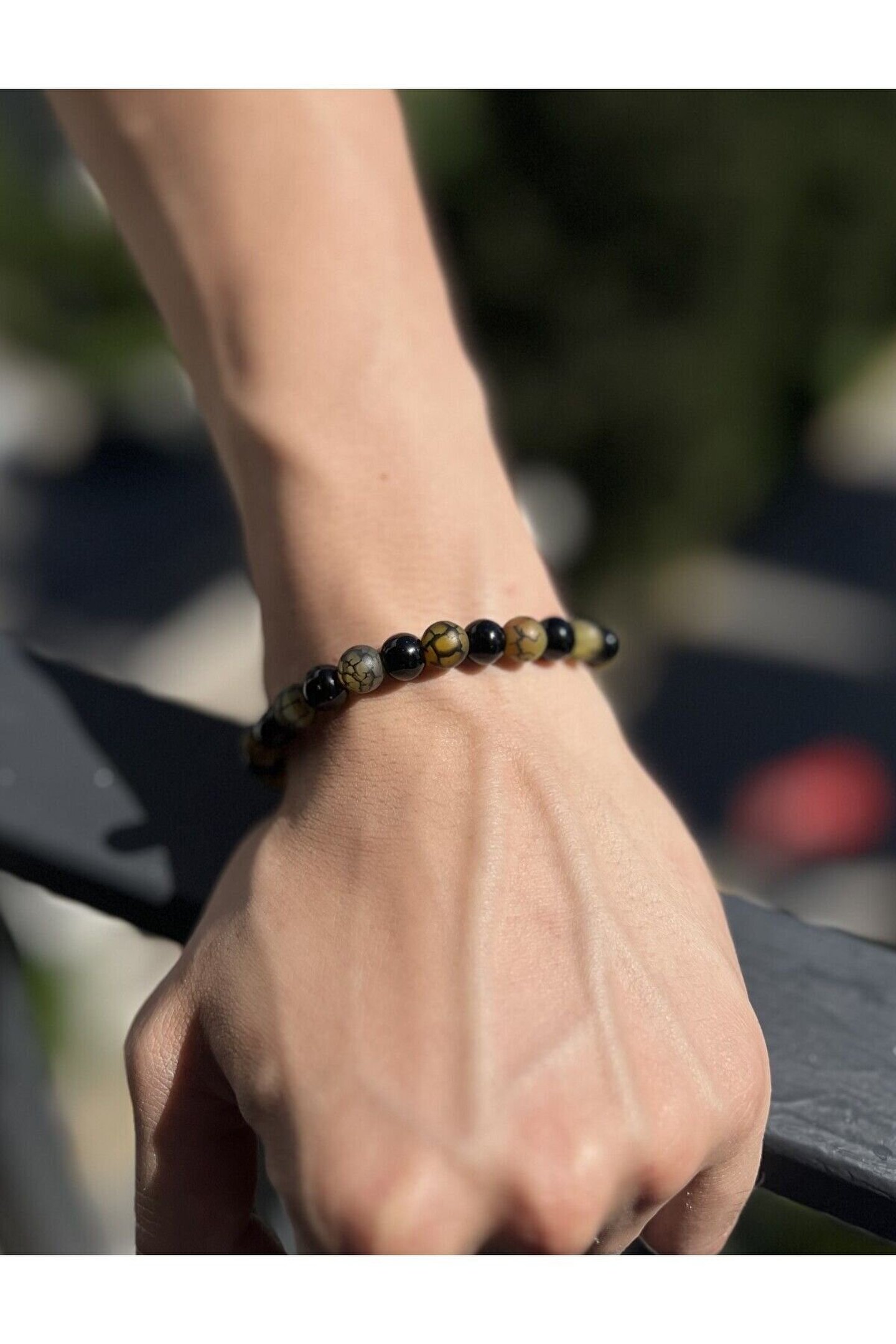 Yosunlu akik kullanımı sayesinde, bu bileklik hem şık hem de doğanın özünü yansıtan bir aksesuar sunar; Doğal taş cinsi ile üretilmiş olup, her bileklik benzersiz ve eşsiz bir görünüm kazandırır; Doğal taş materyaliyle dikkat çeken bu bileklik, zarifliği ve dayanıklılığı bir arada sunar;