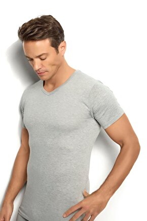 Jiber Erkek Gri Pamuklu Kısa Kollu V Yaka Atlet Fanila 3lü Paket-112