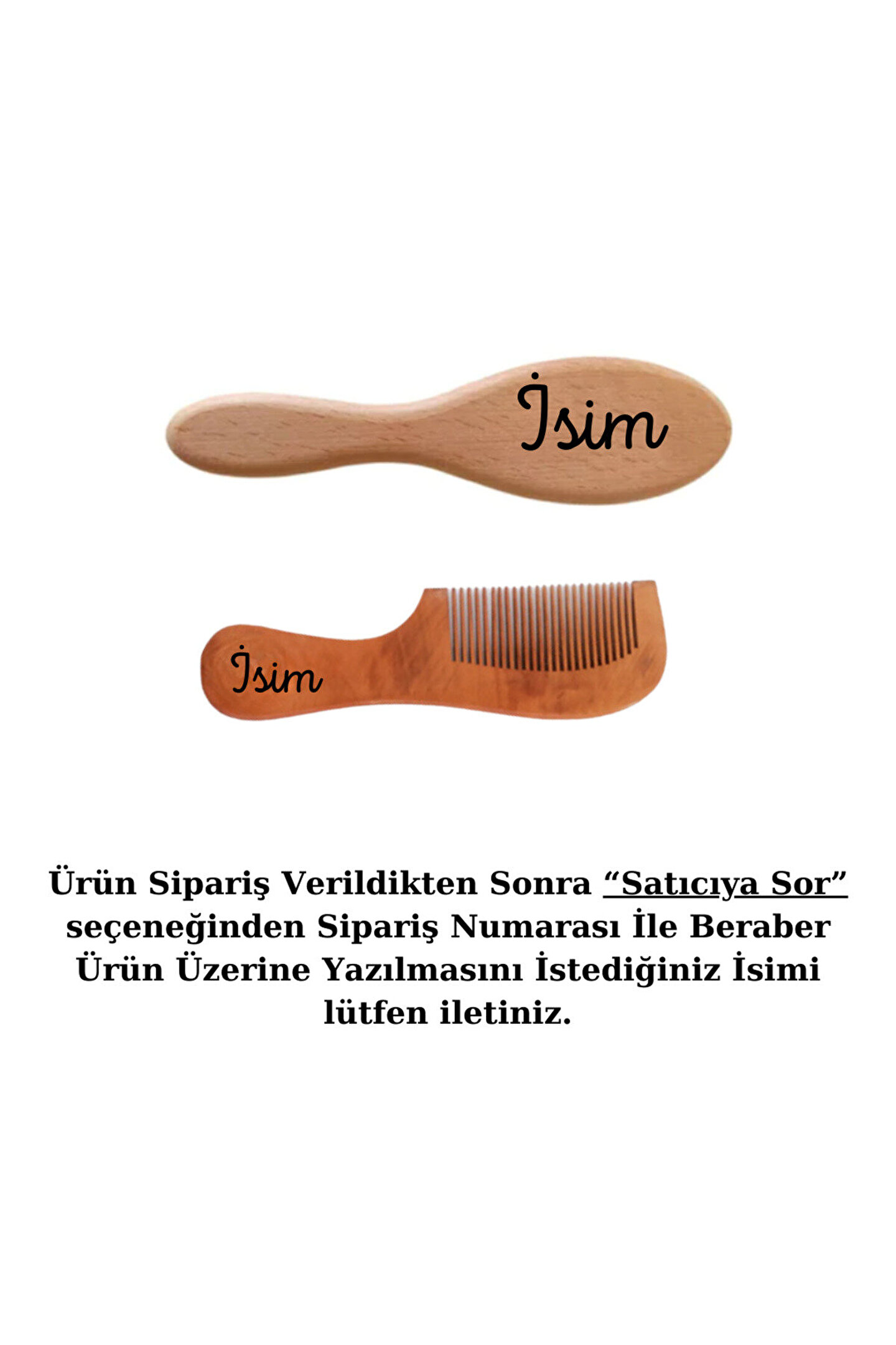 Bebeklerin hassas saçlarını nazikçe şekillendirmek için özel olarak tasarlanmış, yumuşak kıllara sahip bir tarak; Kişiye özel tasarımıyla her bebeğin saç bakım rutinini kişiselleştirir ve sevimli bir dokunuş ekler; Ahşap malzemesi sayesinde doğal ve dayanıklı bir kullanım sunar, uzun süreli ve güvenilir bir deneyim sağlar; Bebeklerin saçlarını nazikçe tarayarak şekillendirme sürecini kolaylaştırır ve ebeveynlerin işini pratikleştirir;