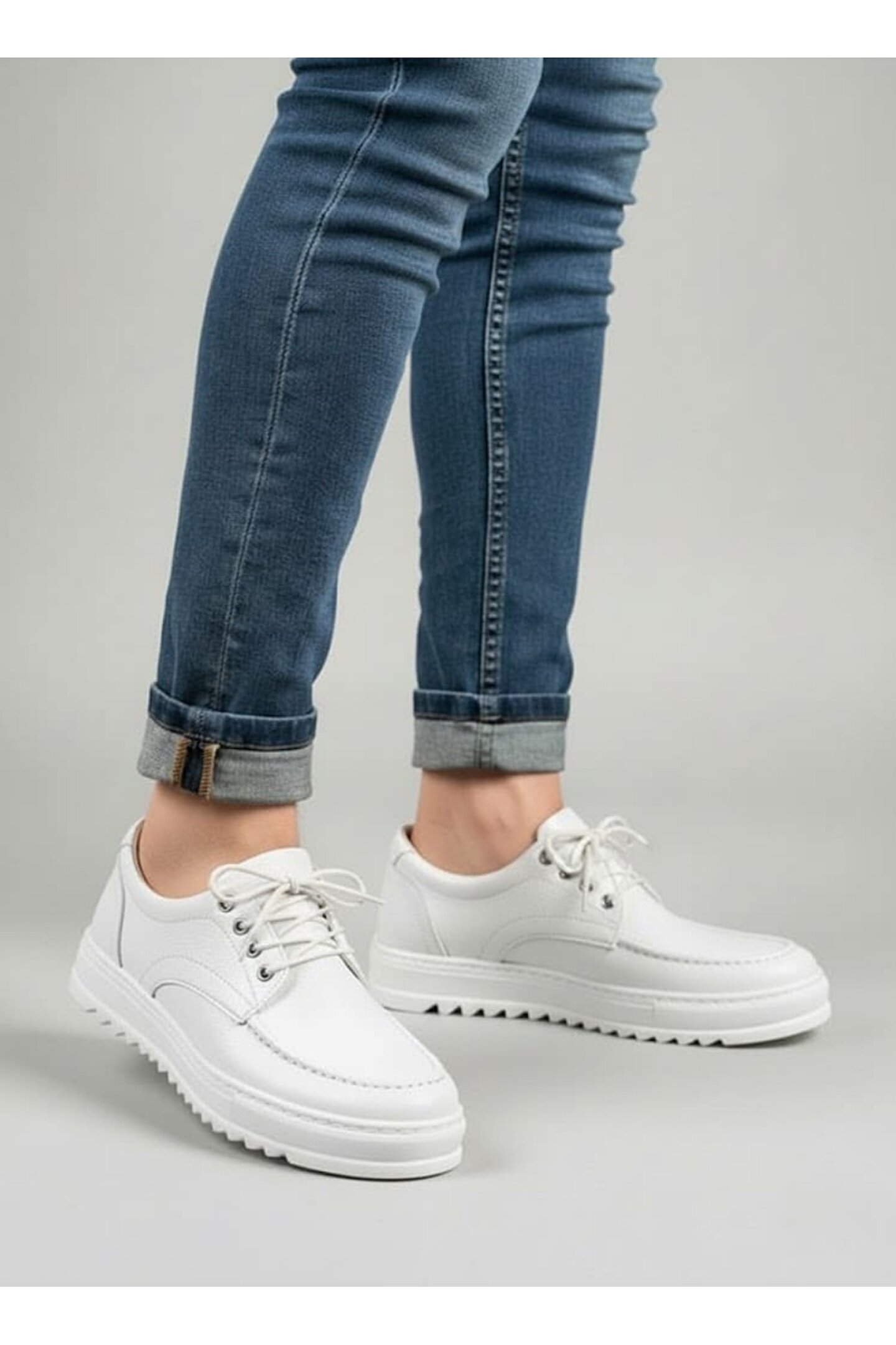 Joy Ayakkabı JY-T12x Arts Bağcıklı Cilt Erkek Günlük Spor Klasik Ayakkabı CBT - Beyaz