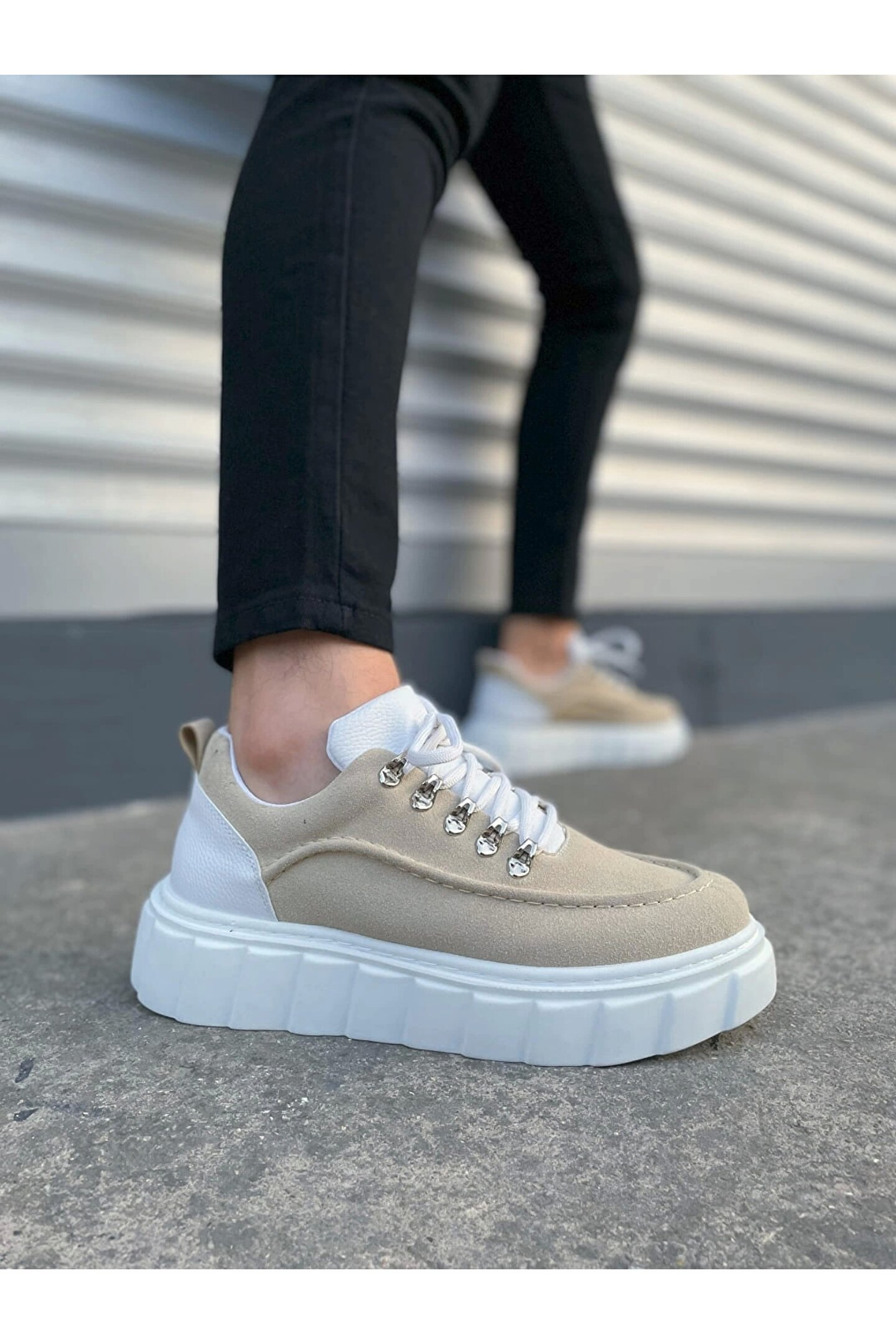 Joy Ayakkabı JY010 Cloud Bağcıklı Süet Erkek Günlük Sneaker Ayakkabı SBT - KremBeyaz