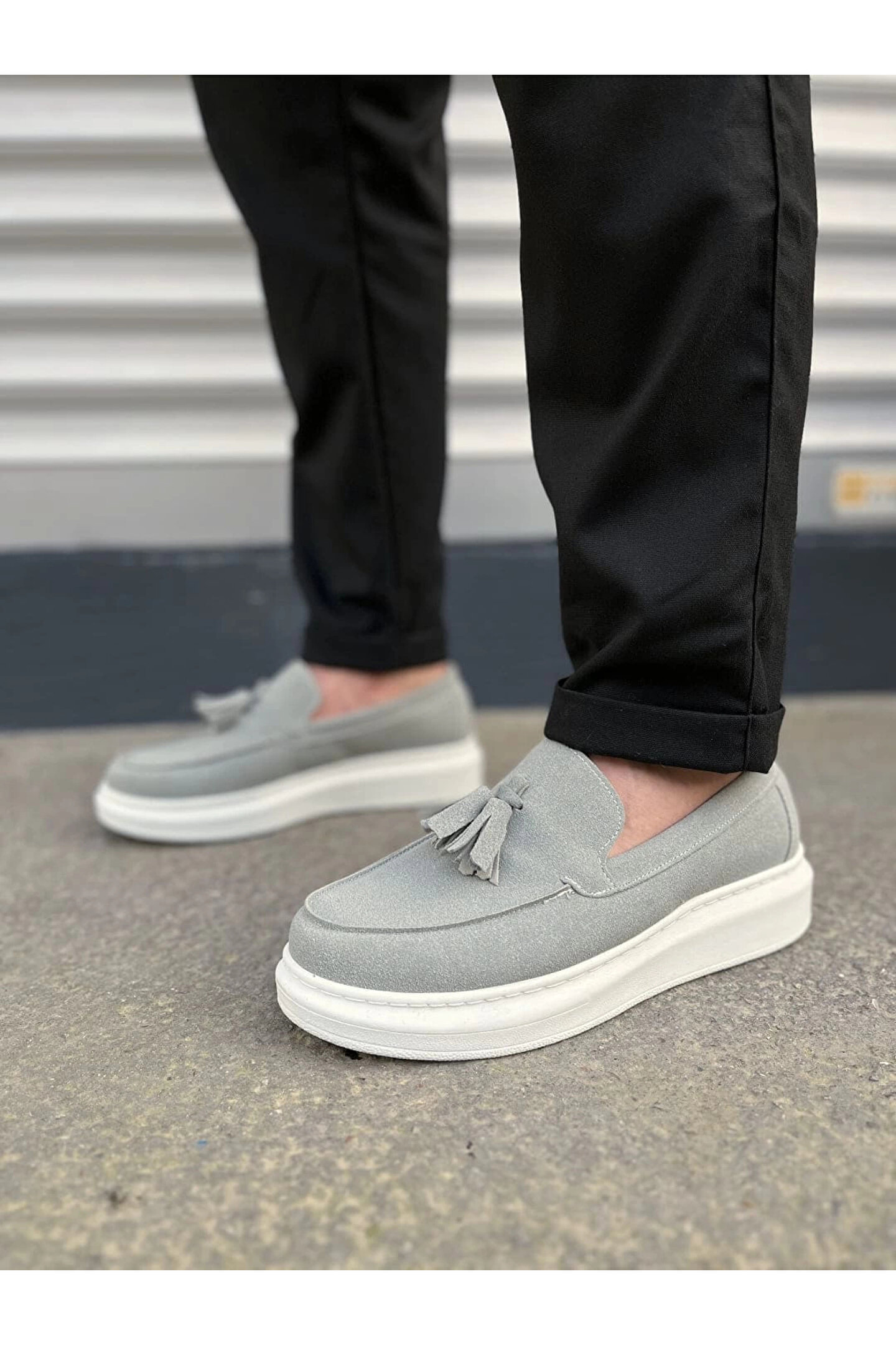 Joy Ayakkabı JY154 Blaze Bağcıksız Püsküllü Süet Erkek Günlük Spor Klasik Ayakkabı SBT - Gri