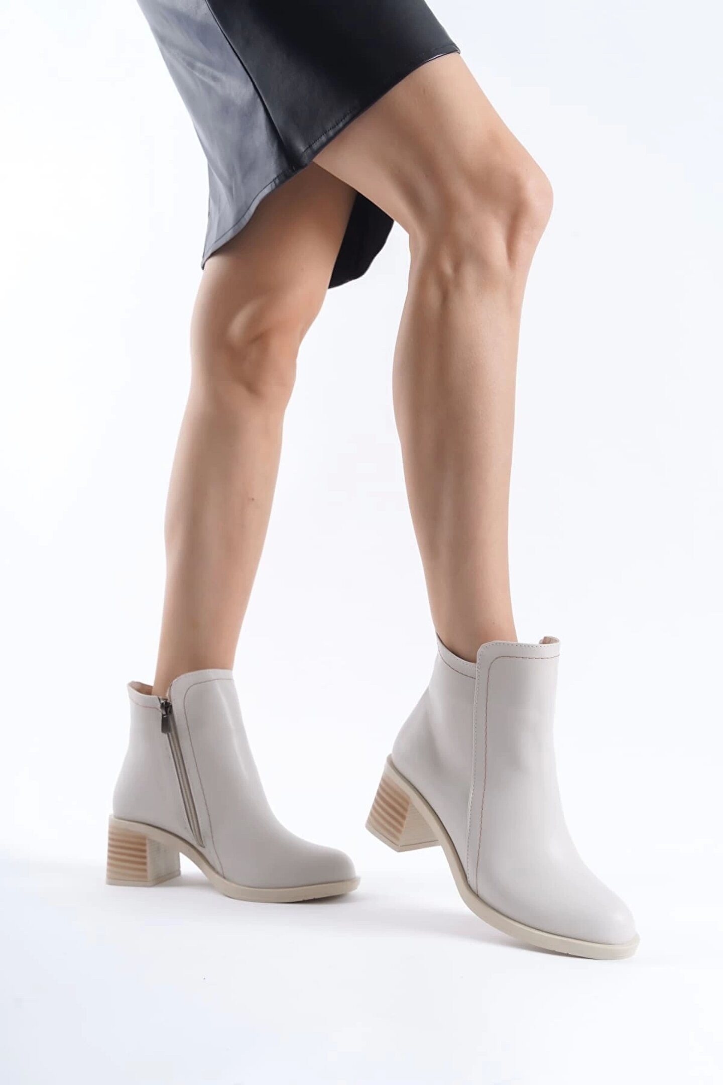 Joy Ayakkabı LARISSA Fermuarlı Ortopedik Taban TopukluKadın Bot KT - Krem