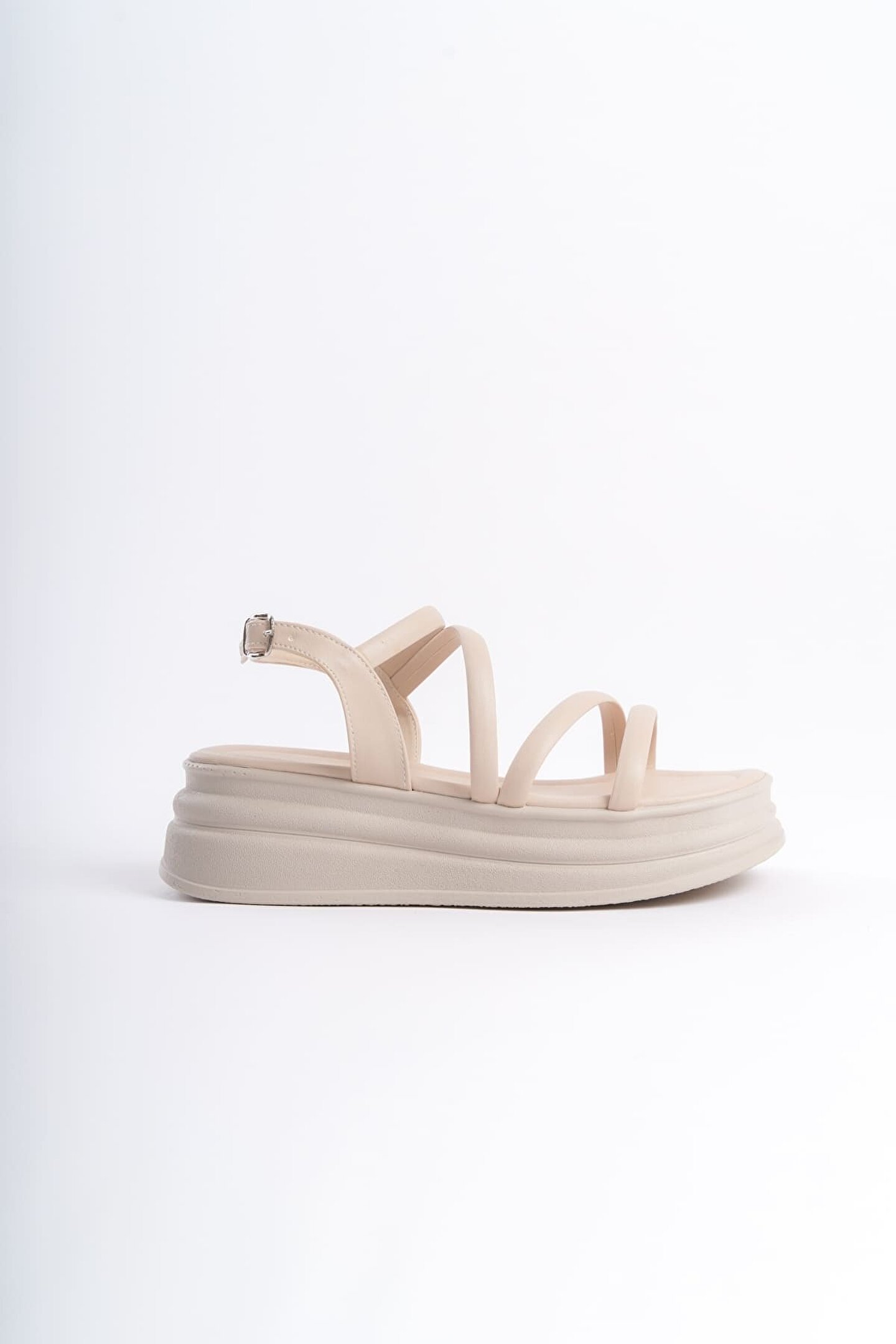 Joy Ayakkabı NATALIE İnce Tokalı Şerit Detaylı Ortopedik Taban Kadın Sandalet CKT - Krem