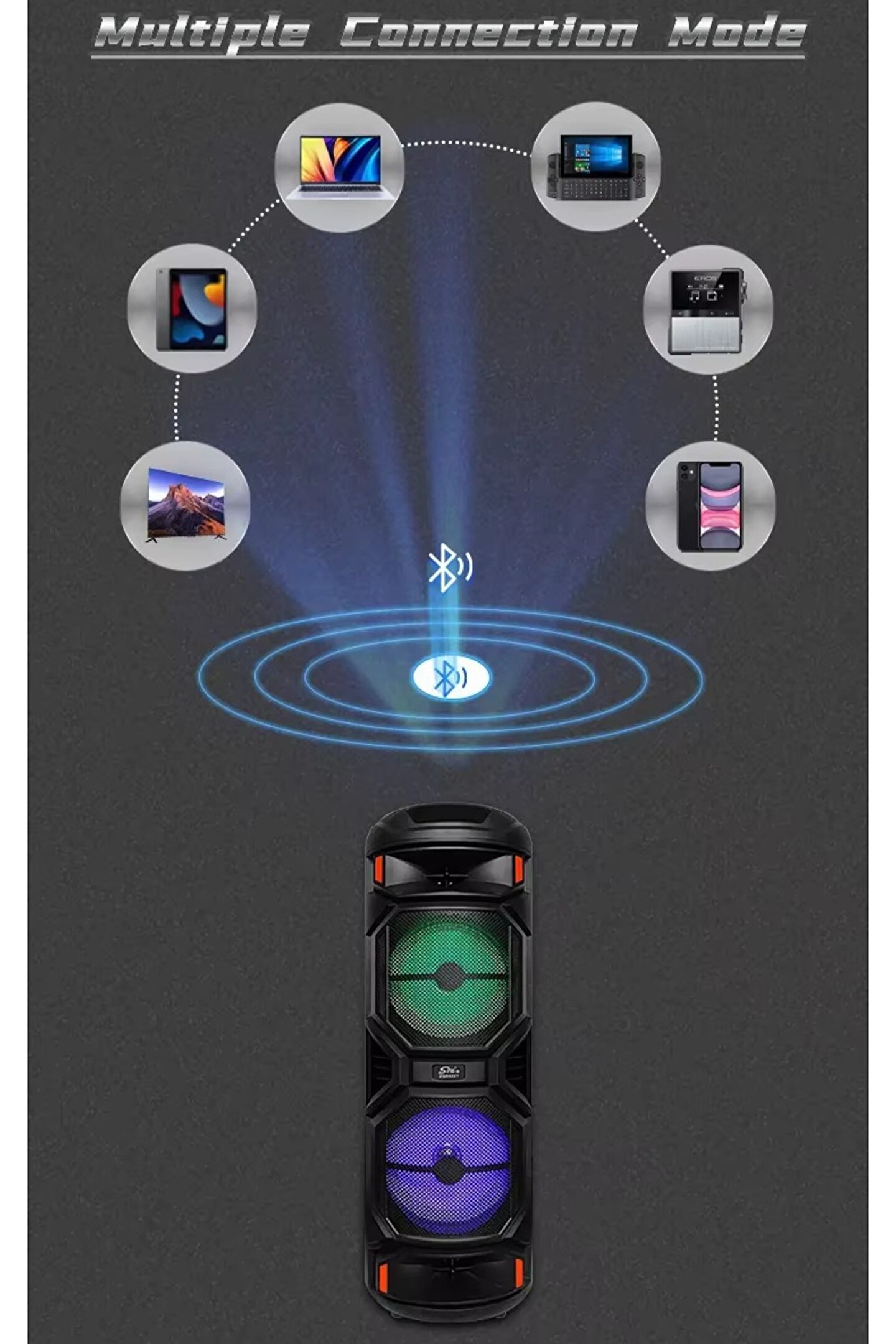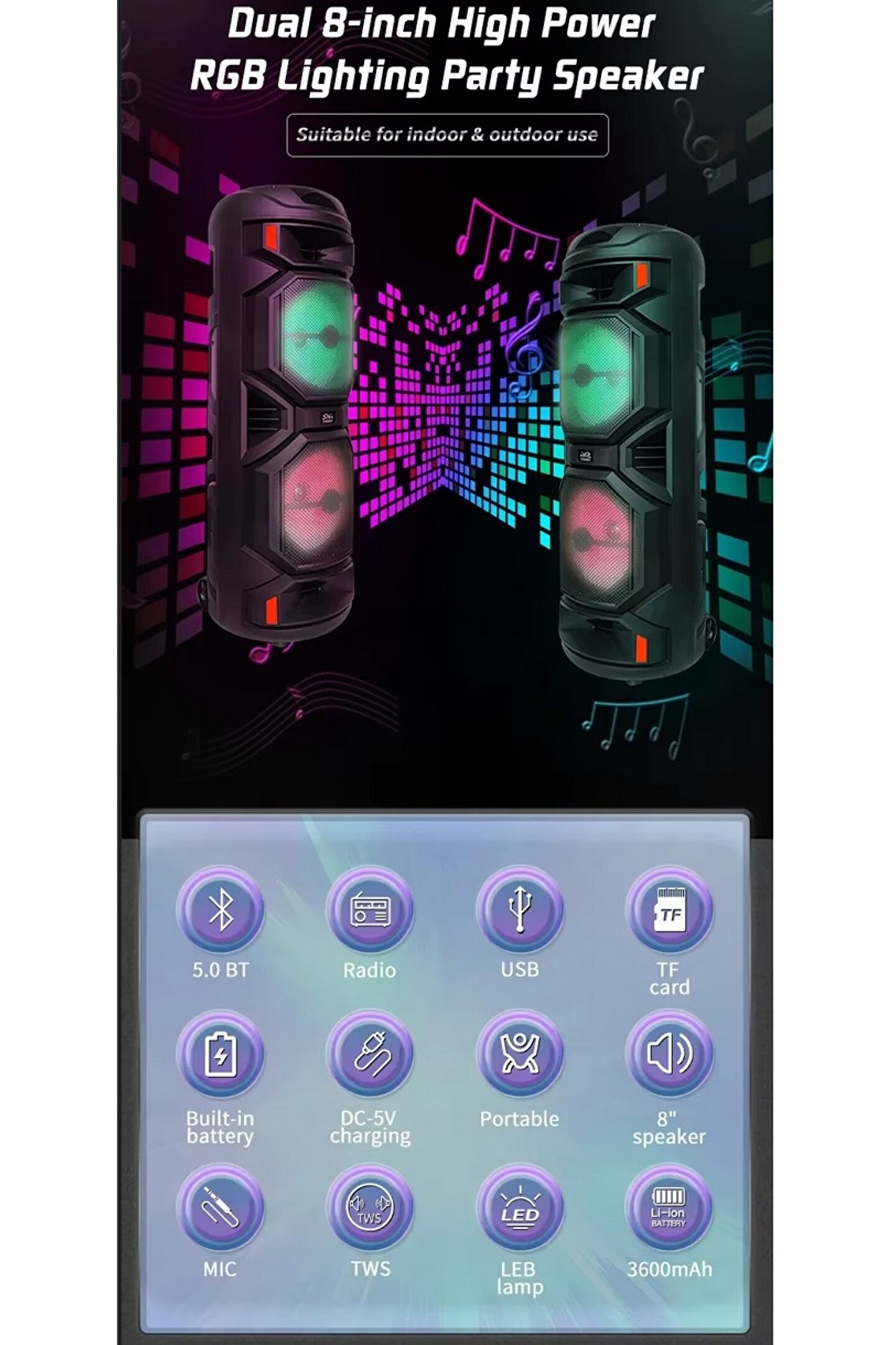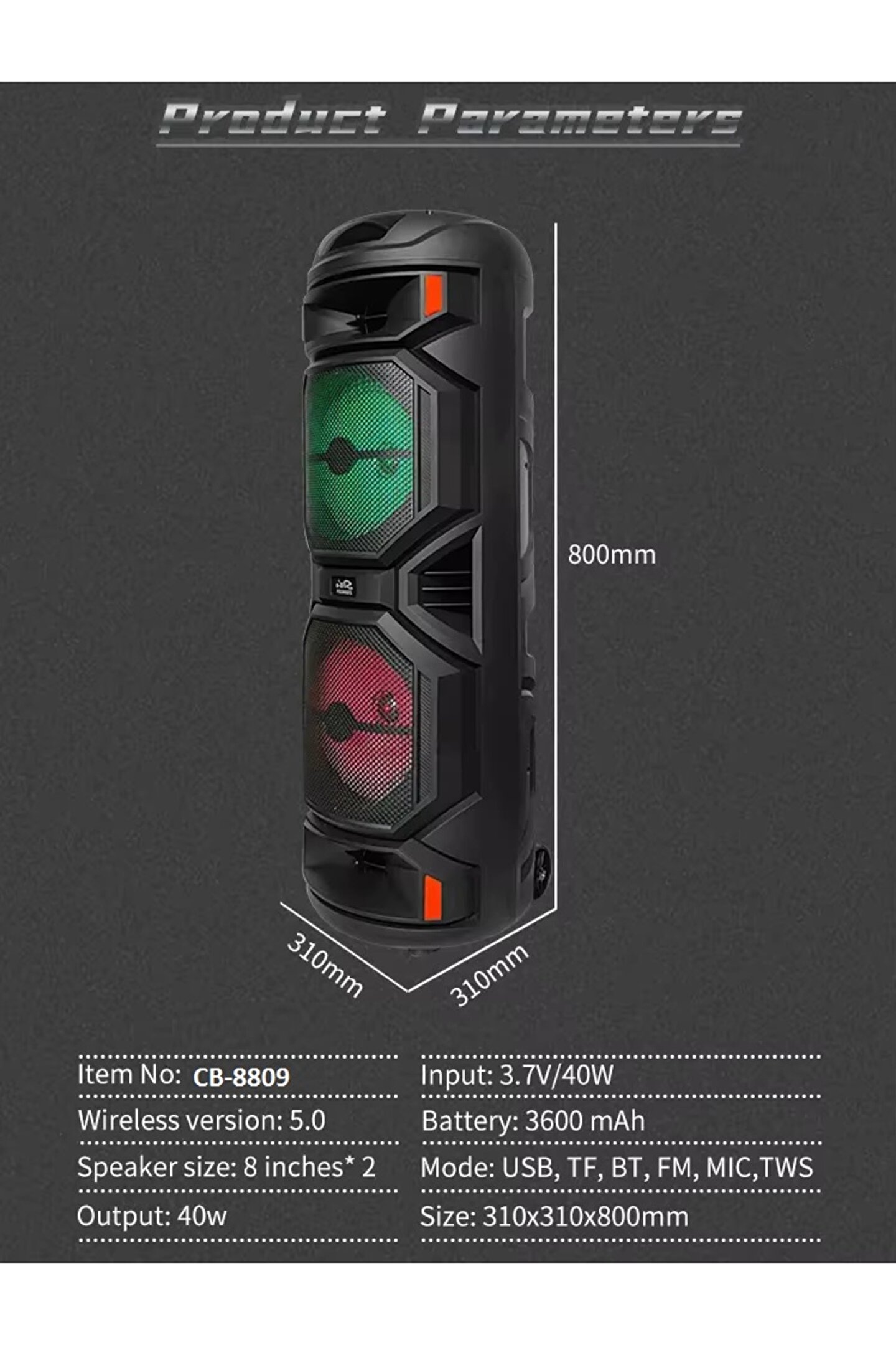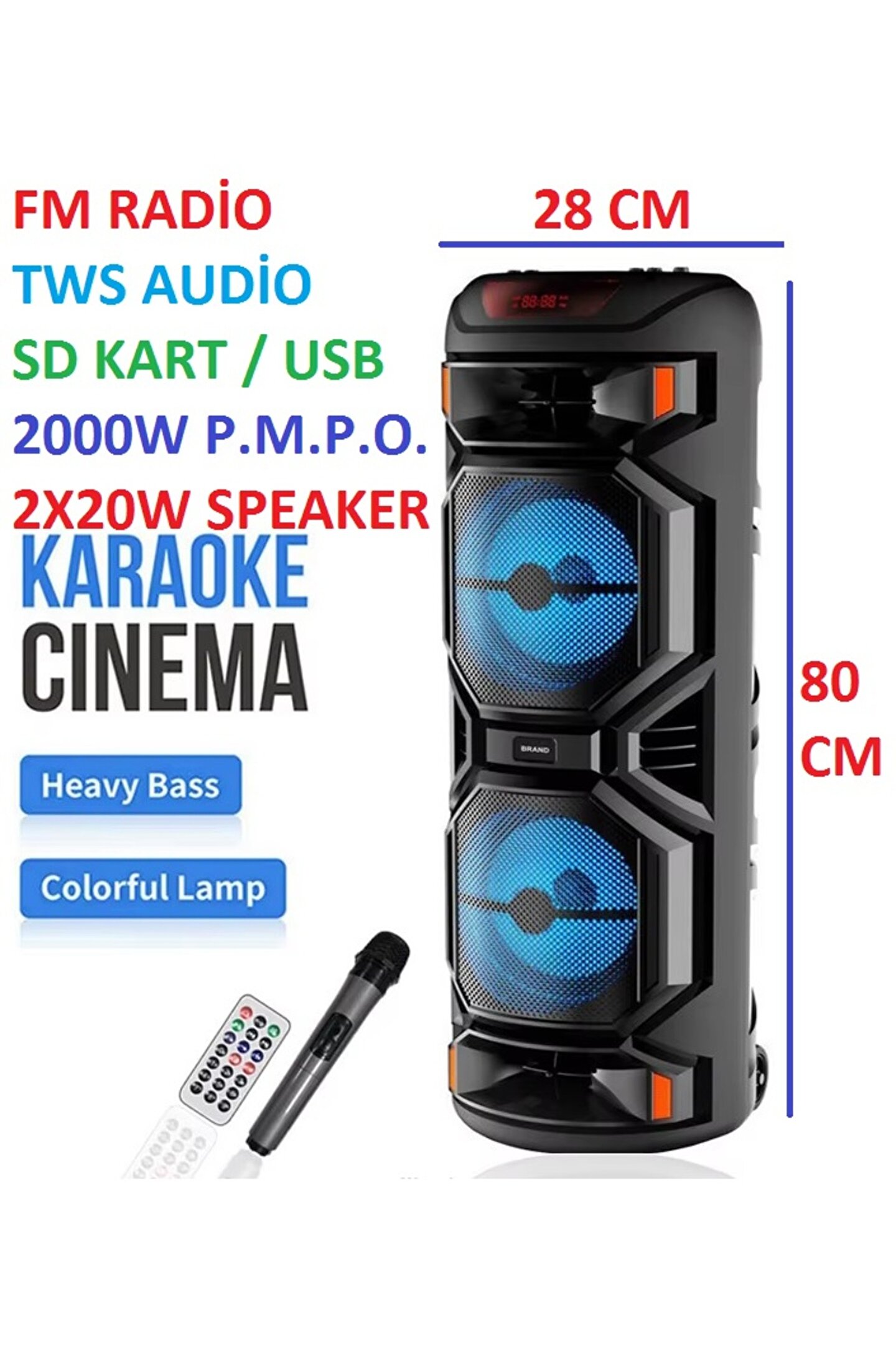 • 2X8 İNÇ BÜYÜK BOY TEKERLEKLİ BLUETOOTH SPEAKER ŞARJLI KABLOSUZ MİKROFONLU HOPARLÖR