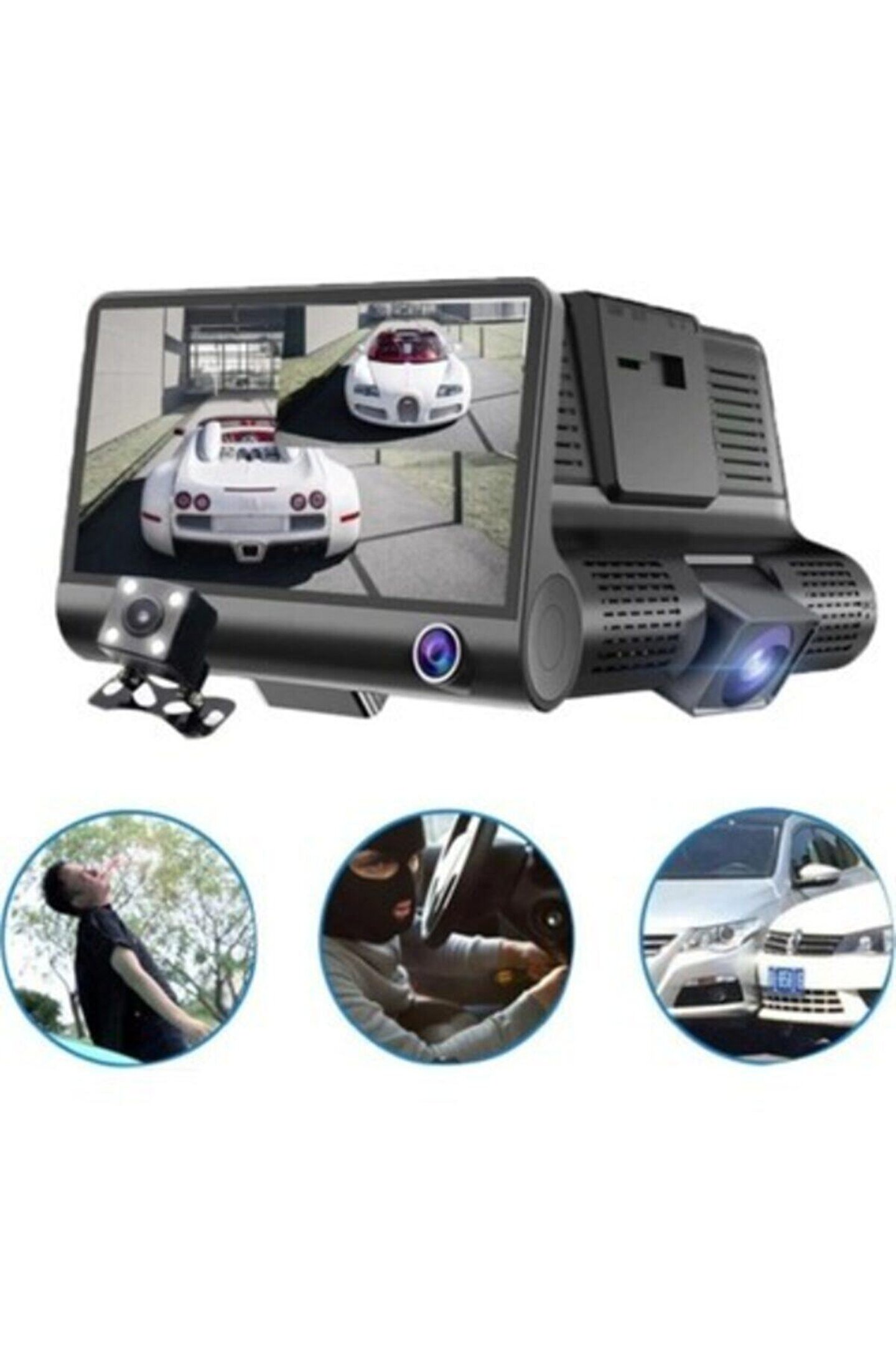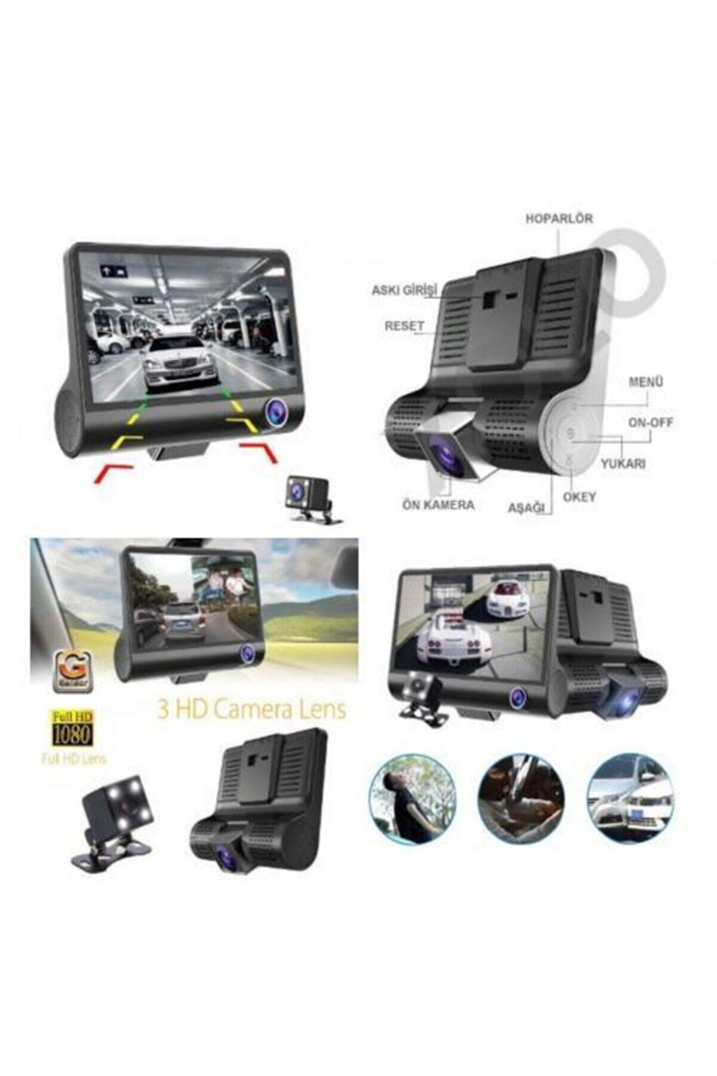 Kingboss sl-D218 1080p full hd 3 lensli araç geri vites kamerası ; 3 lens 4" ıps ekran türkçe full hd 1080p kaliteli dikiz aynalı 3 yönlü araç içi ve geri vites tampon kamerası ; Dash tipi 3 lens kamera ; Kamera: Şoför görüş alanı ; Kamera: Araç içi ; Kamera: Geri vites kamerası ; 170° (ön) /120° (araç içi) /140° (arka) geniş açılı lens ; 4" yüksek çözünürlüklü ıps ekran ; Türkçe dil desteği ; Allwinner chipset ; 4 pin av in giriş soketi (2. Kamera için) ; 2 kamera aynı anda görüntüleme (bölünmüş, içiçe, 1-2 tam ekran) ; Yüksek kalite resim çözünürlüğü ; Full hd 1080p video kayıt ; Dinamik beyaz dengesi ; Döngüsel kayıt (loop recording) ; Hareket algılama (motion detect) ; G-Sensor (darbe hassasiyeti) ; Park modunda kayıt (aküden direk beslenmesi durumunda) ; Otomatik kayıt başlatma ; 8 gb - 32 gb harici hafıza kartı desteği ; (hafıza kartı kutu içeriğine dahil değildir) ; Abs gövdeli dış kasa ; 4 adet aksesuar (çakmaklık adaptörü, arka kamera, 6 metre av kablosu, cam bağlantı aparatı ;