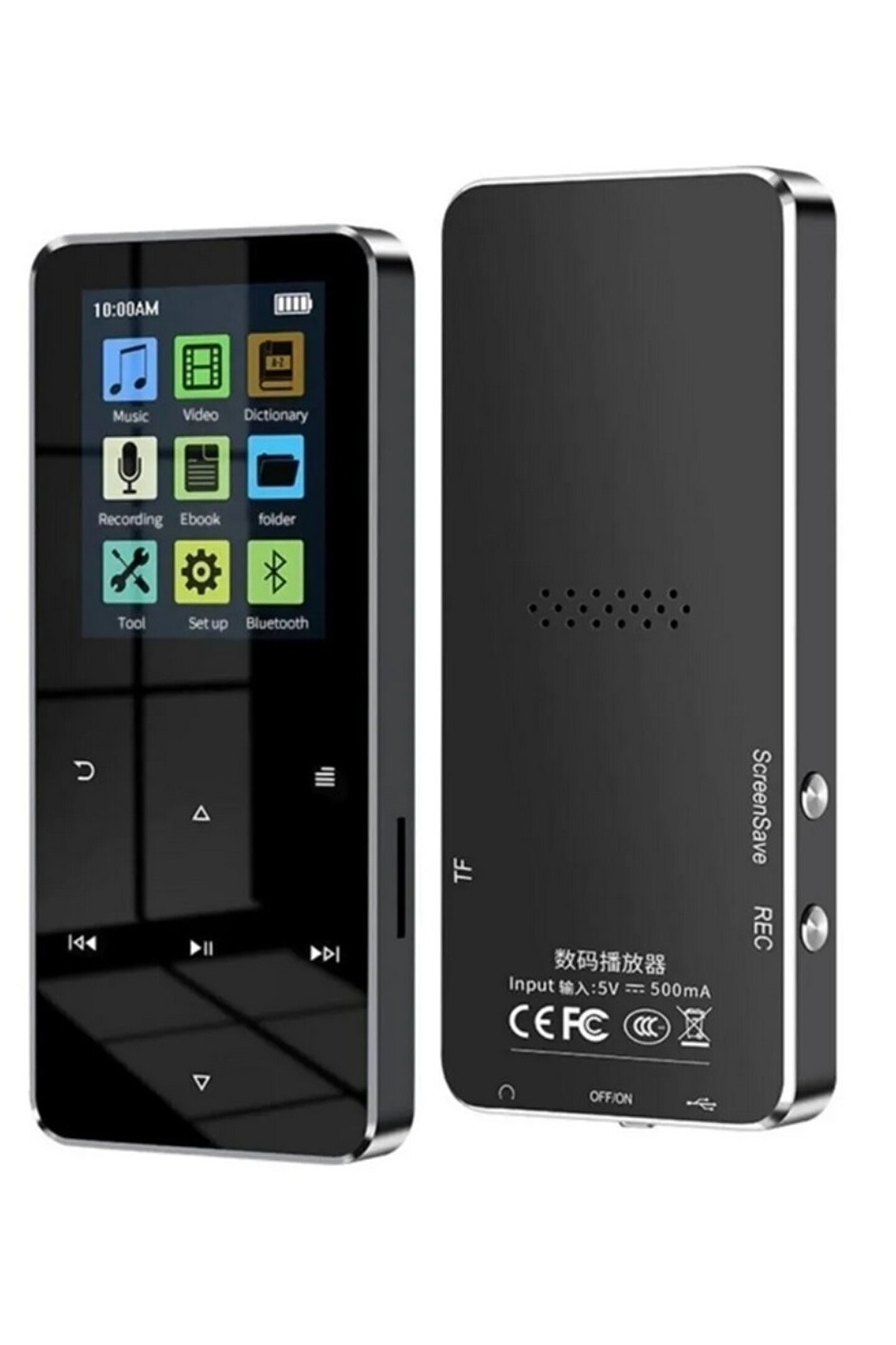 Açıklama: 1; 8 inç renkli ekran Kayıpsız ses kalitesi Bluetooth uyumlu 8 GB DAHİLİ HAFIZA Maksimum destek belleği 128G (dahil değildir) FM radyo E; kitap Özellikler: Sözlük Dahili hoparlör Çalar saat Çoklu dil desteği Video oynatma: AW/AVI (dönüştürülen video) BLUETOOTH KULAKLIK VEYA HOPARLÖR E BAĞLANILABİLİR BLUETOOTH İLE TELEFONA BAĞLANMAZ Paket içeriği: 1; MP3 müzik çalar 1; USB kablosu 1; kullanım kılavuzu 1; kablolu kulaklık;