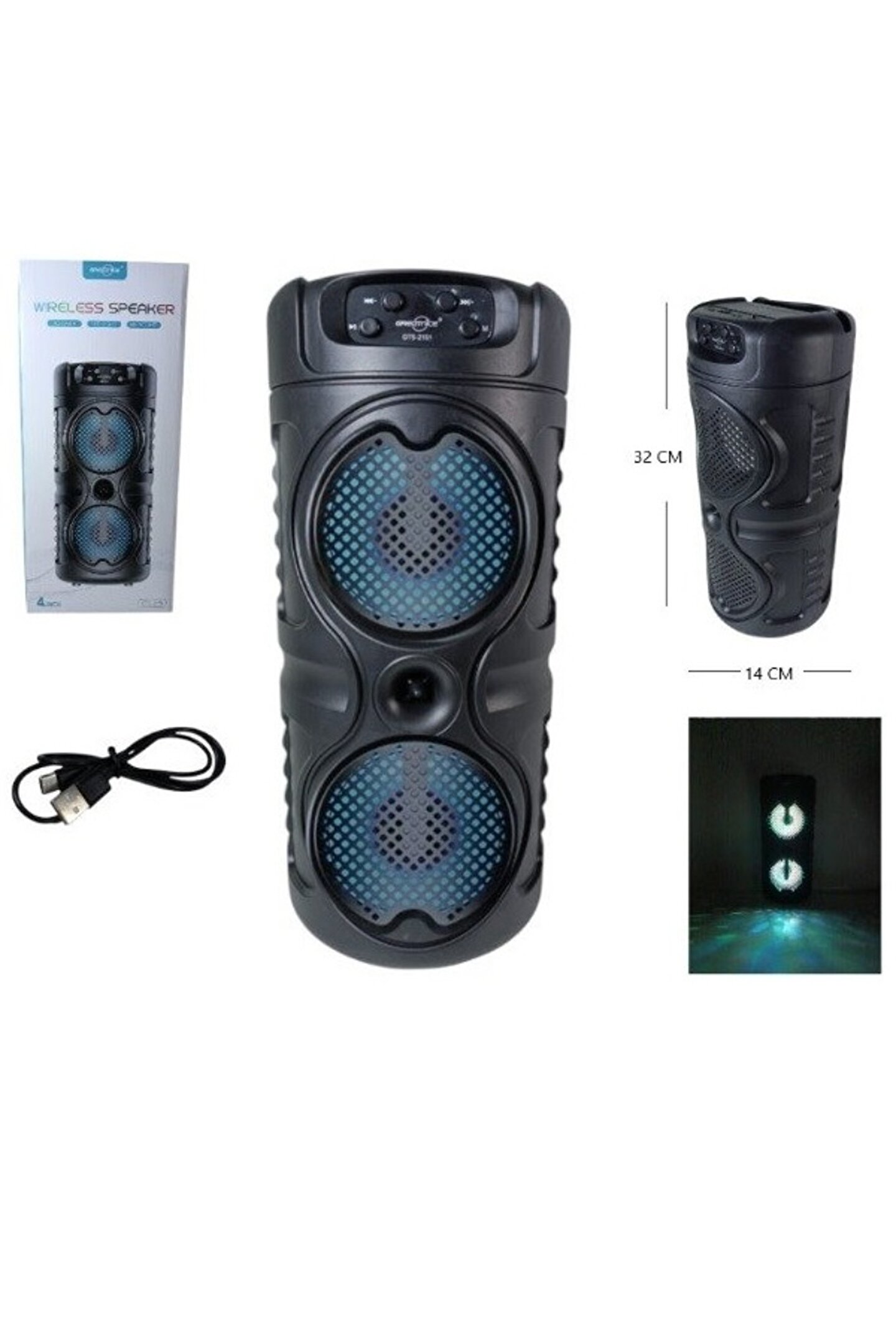 TAŞINABİLİR BLUETOOTH HOPARLÖR USB TF KART OKUYUCU FM RADYO 2 X 4 İNÇ RGB IŞIKLI