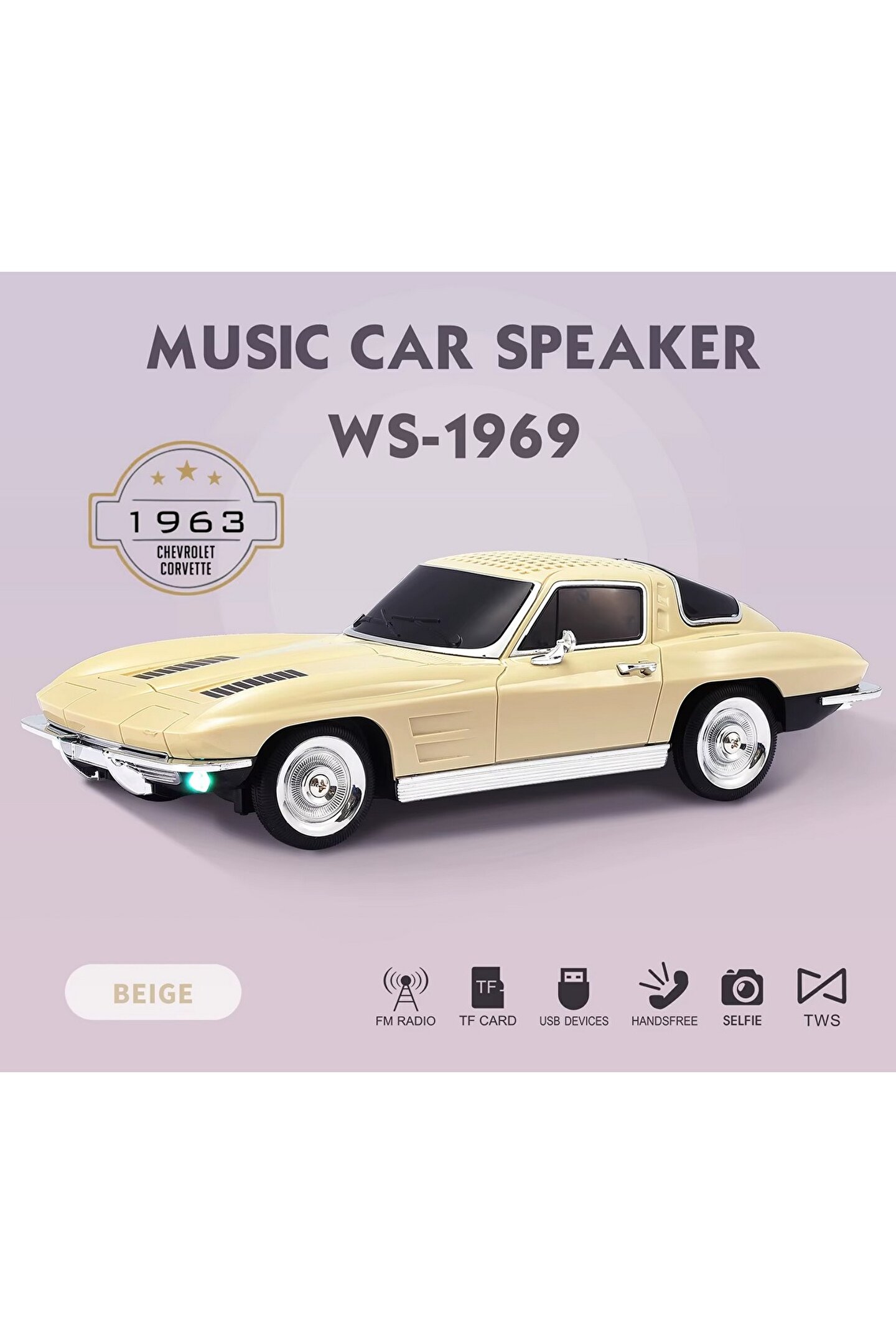 • Estetik ve İşlevsellik Bir Arada: WS-1969'un şık tasarımı, 1969'un klasik araba modellerine özgü detayları içerir. İnce detaylarla bezenmiş kaplaması, metalik dokunuşları ve dikkat çekici renkleriyle her ortamda göz kamaştırır. Bu hoparlör, sadece dışarıdan değil aynı zamanda içeriden de güçlü bir performans sunar.