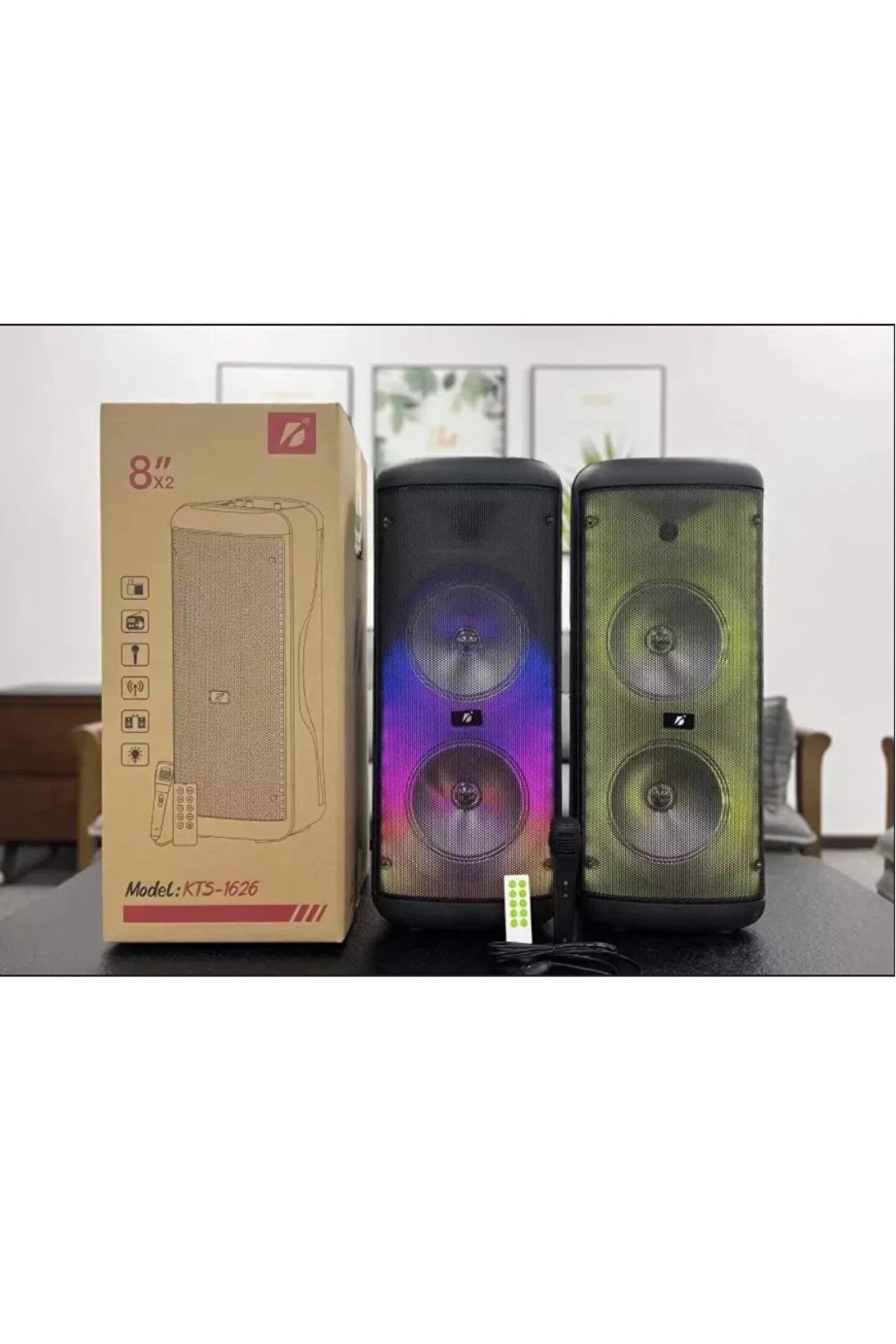KTS-1626 çift 8 inç BT parti hoparlör ile LED alev ışık