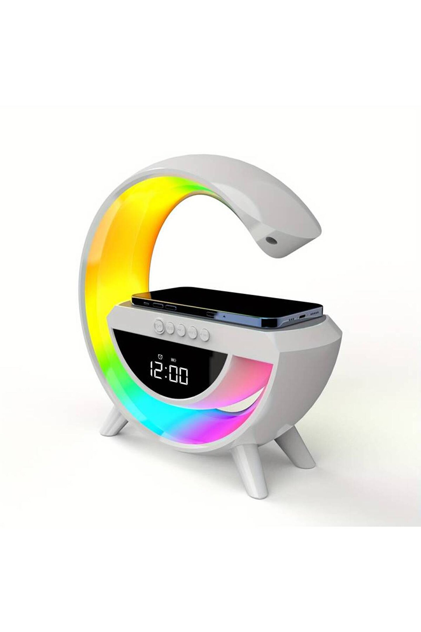 Bluetooth'lu LED Kablosuz Şarj Hoparlörü.Şartname: Kablosuz Şarj Gücü : 15W Bluetooth Sürümü: 5.3 Bluetooth Adı: BT3401 Çıkış Gücü : 5W Bluetooth Frekansı :2,4 GHz - 2,48 GHz İletim Mesafesi: 10 metre Ses Frekans Aralığı: 50HZ- 20KHZ Dahili Lityum Pil Gerilimi: 3,7V Şarj Girişi: DC5V/500MA Ürün Boyutu: 235*80*238mm FM Radyo Dört Oynatma Modu: BT Play, USB, TF Kart ve AUX BLUETOOTH İLE TELEFONA BAĞLANDIGINDA OTOMATİK SAAT AYARI YAPARALARM İÇİN M TUŞUNA 2 DEFA ARKA ARKAYA BASILMASI GEREKİR SAĞ VE SOL İLERİ GERİ TUŞLARINDAN AYARLANABİLİRAÇMA TUŞUNA UZUN BASILI TUTULDUGUNDA BLUETOOTH MODUNDA AÇILIRM TUŞUNDAN MOD DEĞİŞTİRİR FM RADYO SD KART USB GİBİAÇMA TUŞUNA BASIP ÇEKTİĞİNİZDE IŞIK MODLARI DEĞİŞTİRİRKABLOSUZ ŞARJ KULLANILABİLMESİ İÇİN ŞARJA TAKILI OLMASI GEREKİR