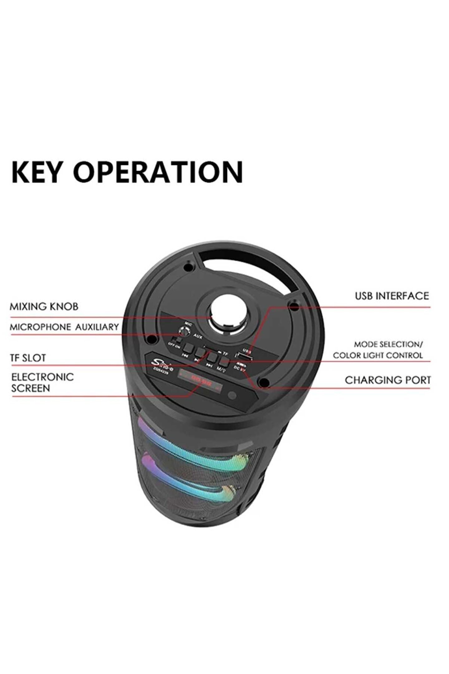 İthalatçı garantisi ile güvenli bir kullanım sunar ve 2 yıl boyunca olası teknik sorunlara karşı koruma sağlar; 5 ila 10 saat arasında kesintisiz müzik deneyimi yaşatır, böylece gün boyu favori şarkılarınızı dinleyebilirsiniz; Çoklu bağlantı özelliği sayesinde birden fazla cihazla eş zamanlı olarak bağlanabilir ve müzik paylaşımını kolaylaştırır; Karaoke mikrofonu ile sesinizi net bir şekilde duyurmanızı sağlar, böylece şarkı söyleme pratiğinizi geliştirebilirsiniz; LED ışıkları ile gece veya loş ortamlarda bile şık bir aydınlatma sunar ve partilerinize renk katar;