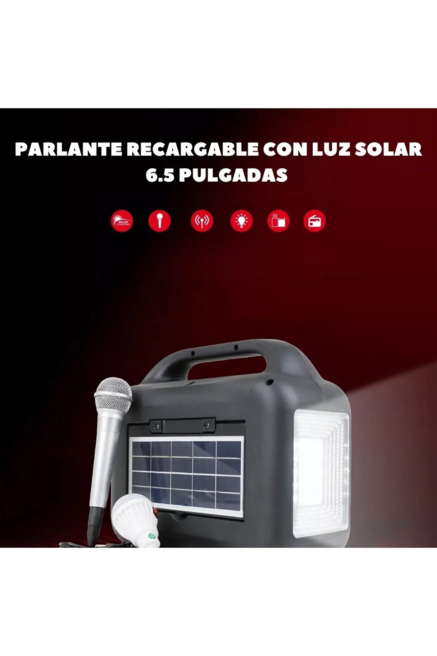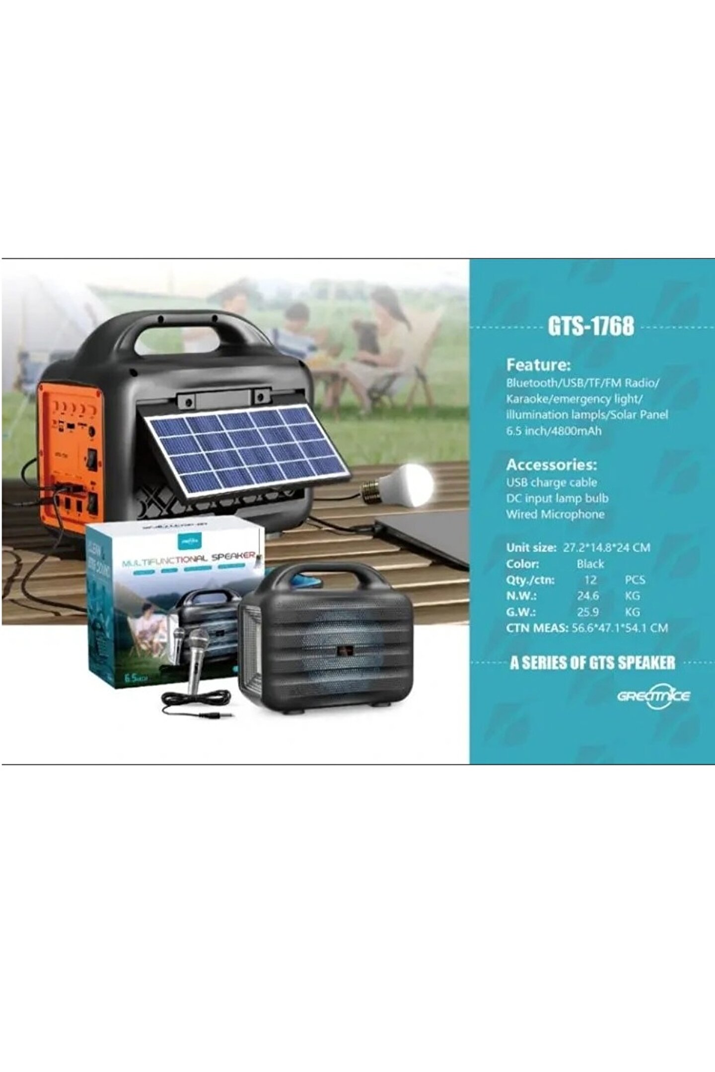 - GTS-1768 Mikrofon,1 Led Ampül ve Fenerli Bluetooth Hoparlör Güneş Panelli Powerbank Kamp Hoparlörü