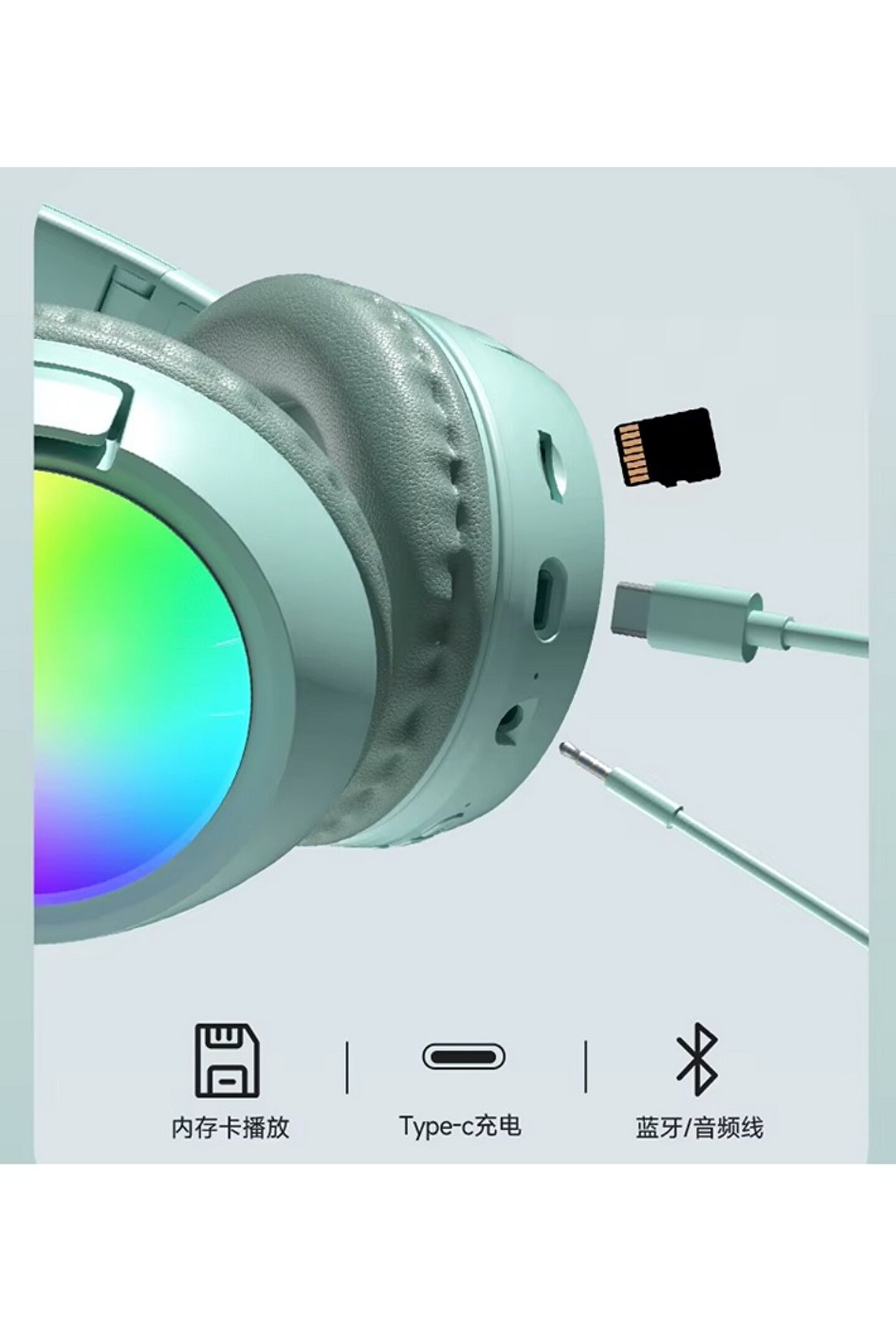 JUNGLEE RGB LED IŞIKLI KABLOSUZ KULAKLIK BLUETOOTH ŞARJLI KULAKÜSTÜ WİRELESS HEADPHONES MİKROFONLU