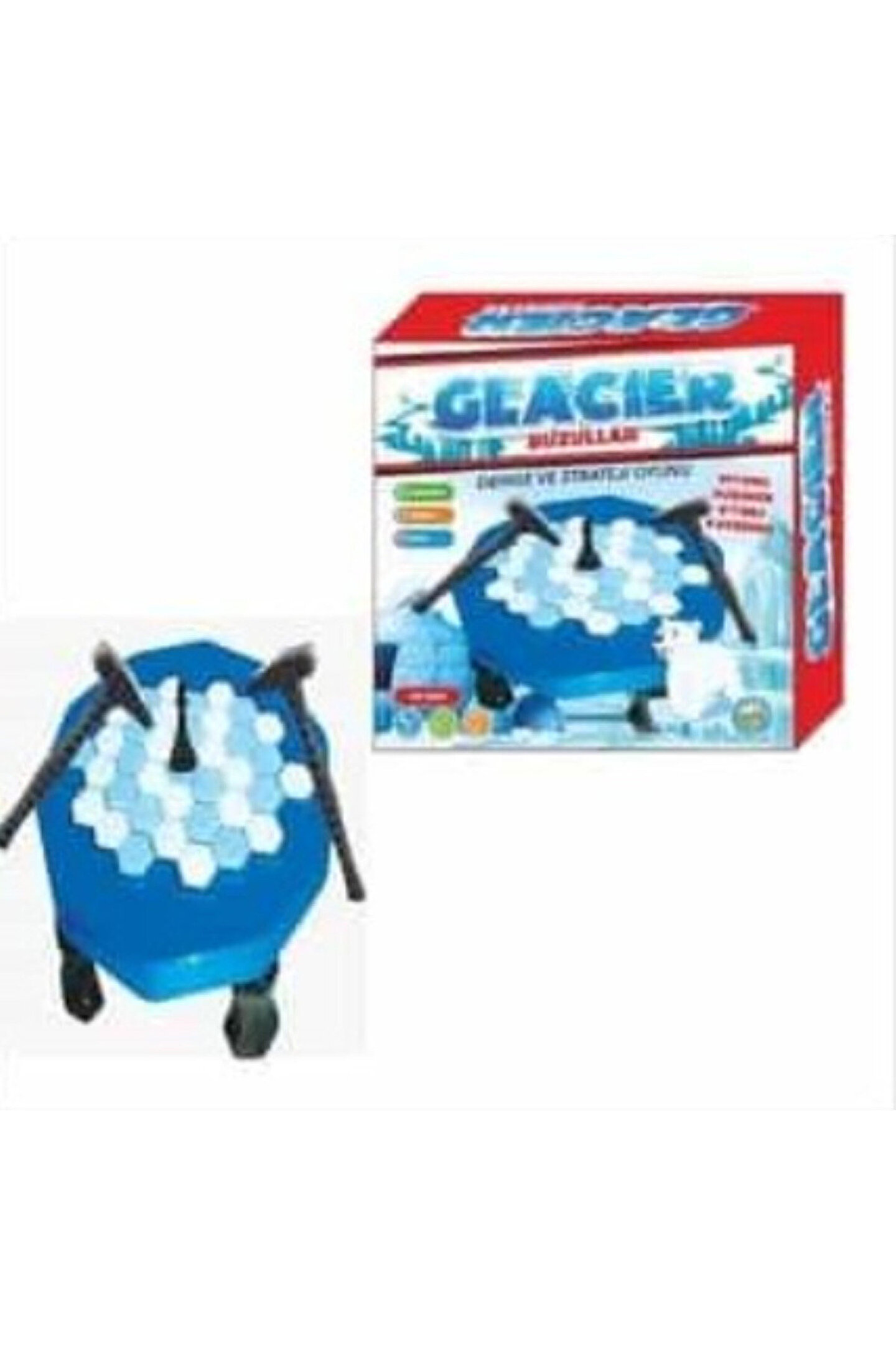 İçindekiler 37 Adet Buz Küpü 2 Adet Çekiç 1 Adet At 1 Adet Oyun Çerçevesi 4 Adet Oyun Çerçevesi Ayağı Oyun Hazırlanışı Oyun çerçevesinin ayakları takılır. Oyun çerçevesi düz bir zemine ters olarak çevirilir ve buz küpleri renk ayrımı olmaksızın yerleştirilir. Oyun çerçevesi ayaklarının üzerinde durabilecek şekilde düz çevirilir. Çerçevenin orta noktasındaki buz küpünün üzerine piyon yerleştirilir. Oyun Kuralları 2 oyuncu sıra ile buz küplerine birer vuruş yaparak küpü çerçevenin dışına çıkartır. Oyuncu küpleri kontrol ederek vuruş yapamaz ve çekiçle ilk dokunduğu küpü düşürmek zorundadır. Oyun orta noktadaki piyonun düşmesine kadar devam eder. Orta noktadaki piyonu düşüren oyuncu oyunu kaybeder. ;