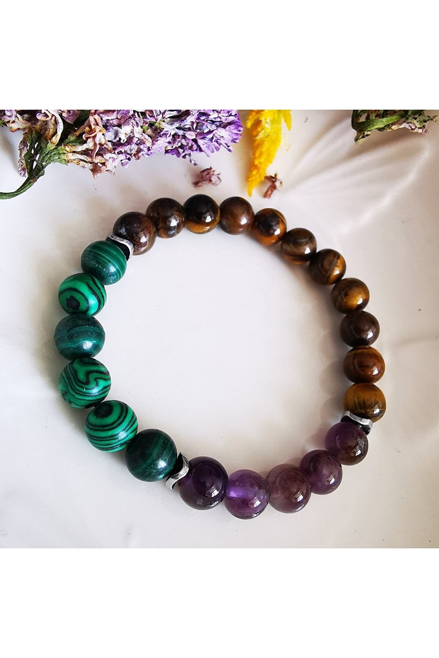 - Doğal taş bileklik, şıklığı ve doğallığı bir arada sunar; - El yapımı ve özgün tasarımıyla dikkat çeker; - Her bilek boyutuna uyum sağlayan esnek yapısıyla rahat bir kullanım sağlar; - Doğal taşların benzersiz desenleri ve renkleriyle göz alıcı bir görünüm kazandırır; - Doğal taş bileklik, hem günlük kullanım hem de özel günlerde tercih edilebilir;