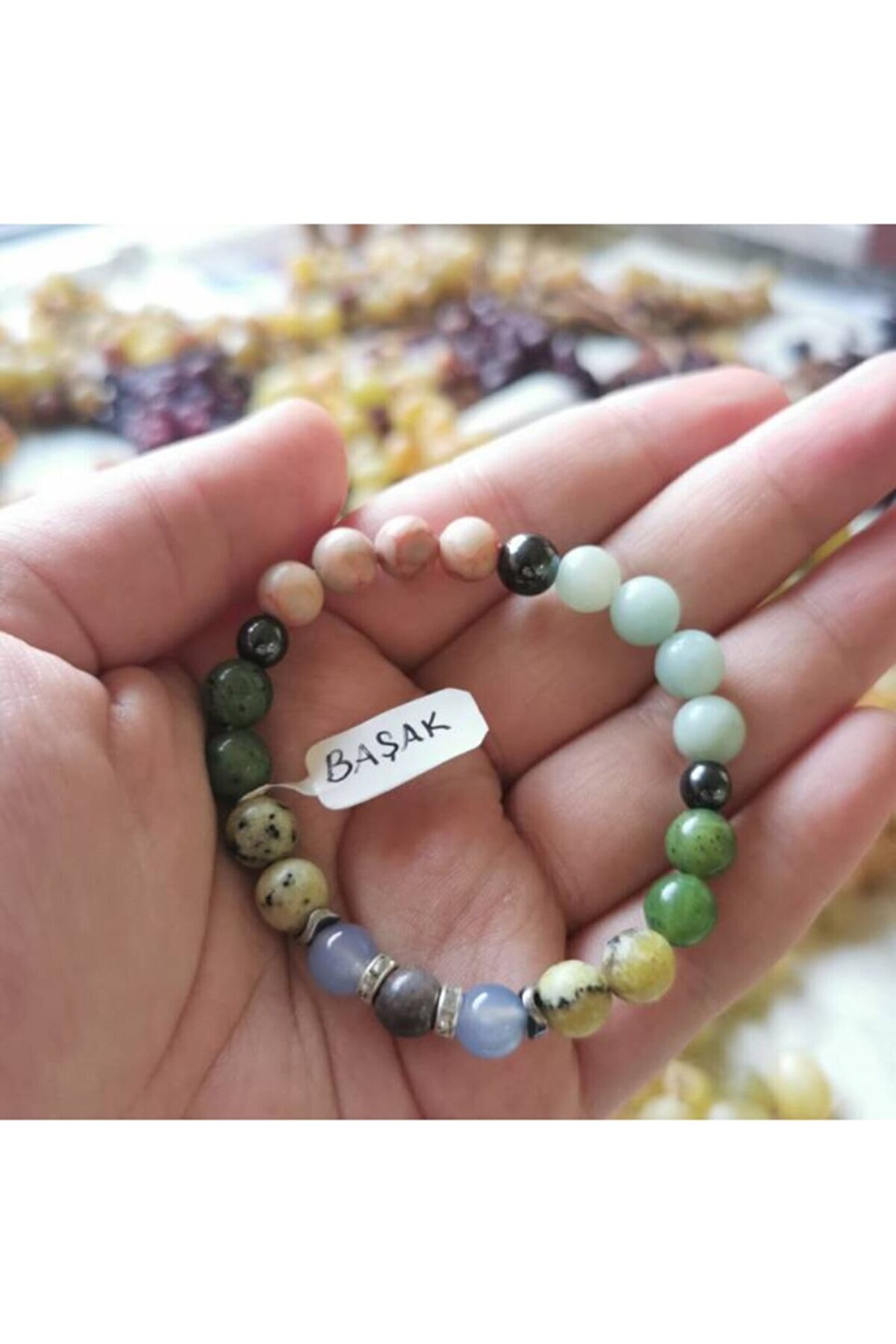 KAM Doğal Taş Takı Başak Burcu %100 Doğal Taş Bileklik BAŞAK Burcu Bilekliği, BAŞAK burcunun özellikleri dikkate alınarak aslan burcuna özel olarak seçilmiş taşlar ile oluşturulmuştur %100 doğal taşlar ve doğal malzemeler kullanılarak özel olarak üretilmiştir. BAŞAK Burcu Taşları; Yeşim 4, Jasper 4, Zeberced 4, Kalsedon 2, Safir 1 Ürünlerimizin tamamı %100 doğal taşlar ve doğal malzemeler kullanılarak üretilmiştir. (Plastik, tahta, silikon boncuklar kesinlikle kullanılmamıştır.) Ürünler sizlere gönderilmeden önce sirkeli suda bekletilmekte ve temizlenmektedir. Özenle paketlenerek paket içerisinde ihtiyacınız olabilecek malzemeler ile hazırlanmaktadır.
