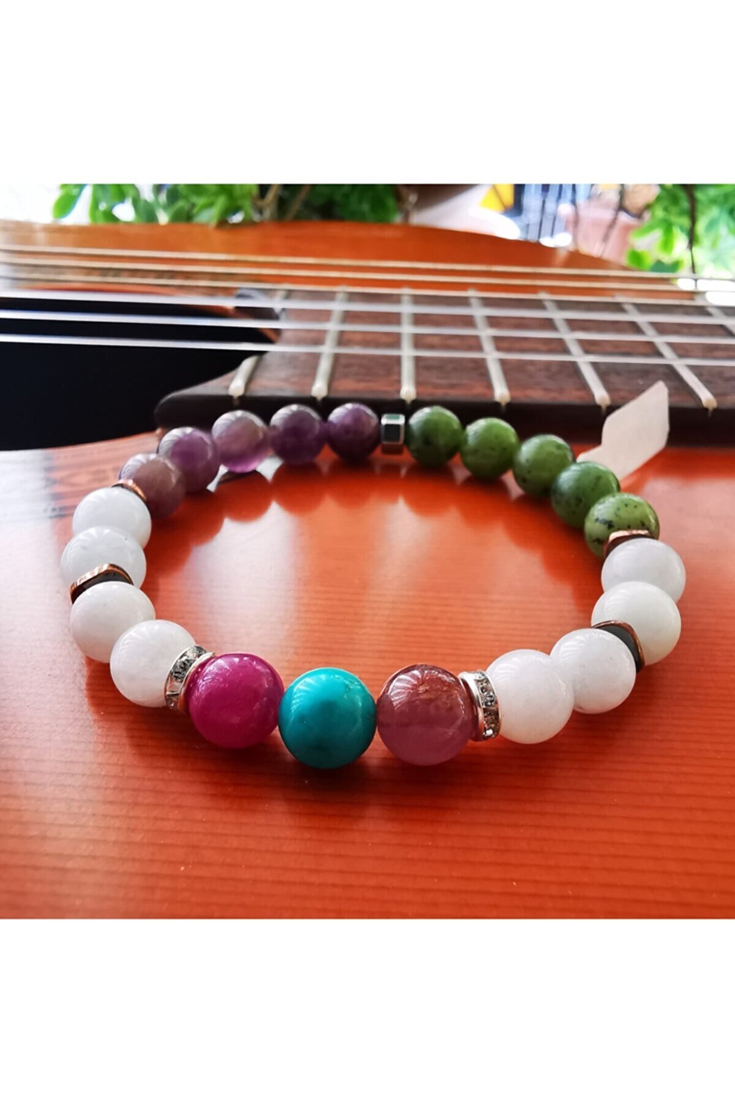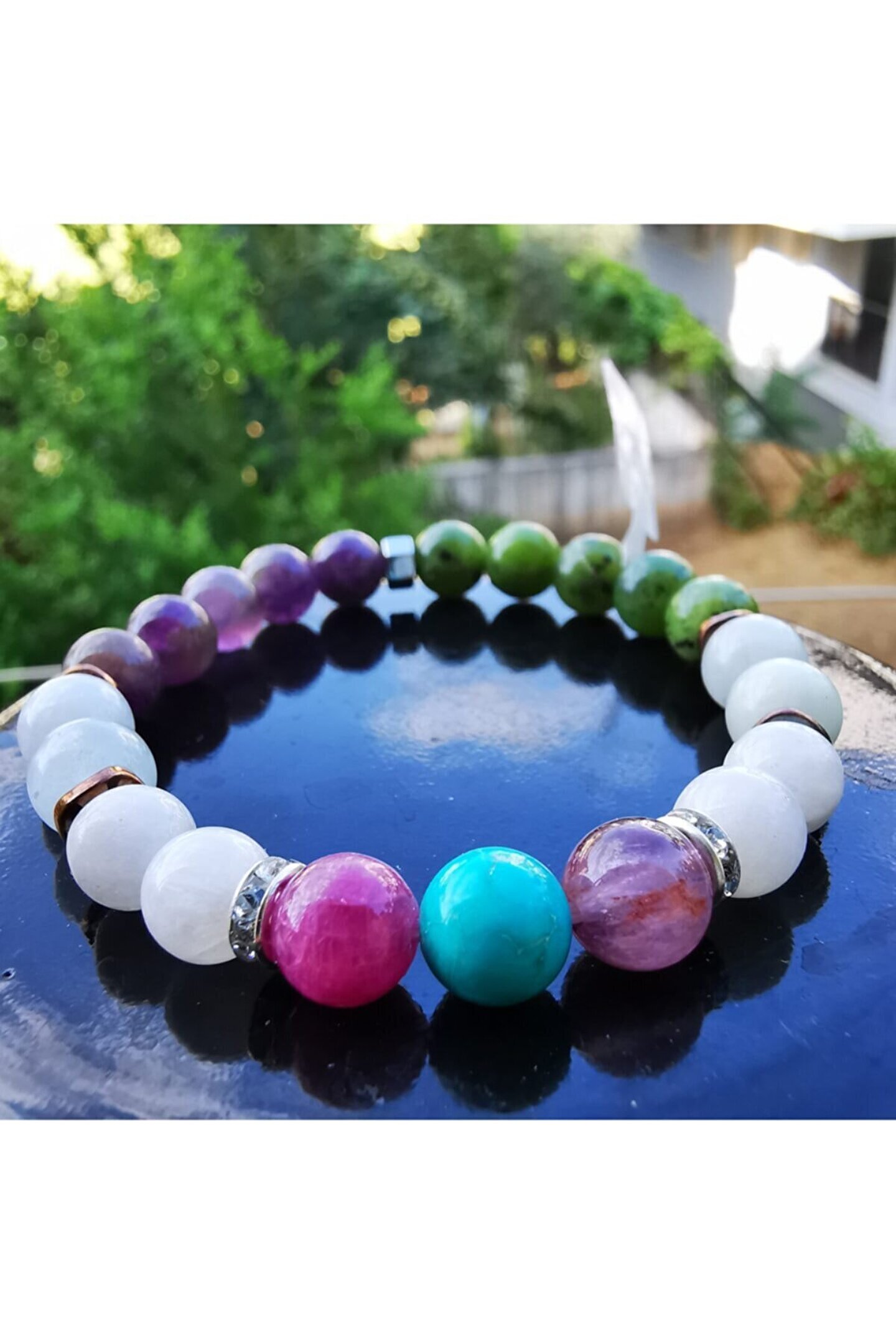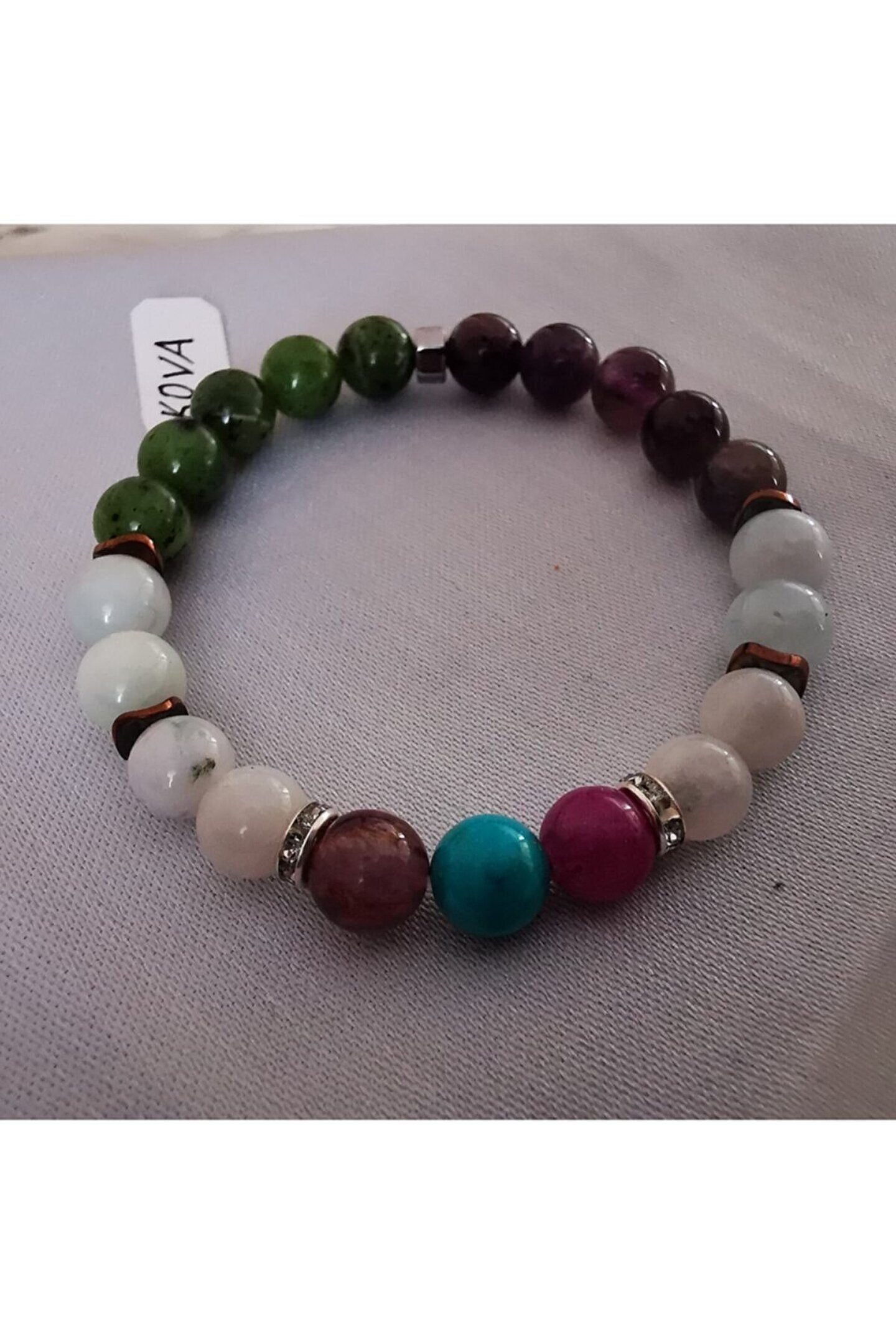 KAM Doğal Taş Takı KOVA Burcu %100 Doğal Taş Bileklik KOVA Burcu Bilekliği, KOVA burcunun özellikleri dikkate alınarak KOVA burcuna özel olarak seçilmiş taşlar ile oluşturulmuştur %100 doğal taşlar ve doğal malzemeler kullanılarak özel olarak üretilmiştir. KOVA Burcu Taşları; Safir 1, Akuamarin 4, Ametist 4, Ametrin 1, Ay Taşı 4, Yeşim 4, Turkuaz 1 adet. Ürünlerimizin tamamı %100 doğal taşlar ve doğal malzemeler kullanılarak üretilmiştir. (Plastik, tahta, silikon boncuklar kesinlikle kullanılmamıştır.) Ürünler sizlere gönderilmeden önce sirkeli suda bekletilmekte ve temizlenmektedir. Özenle paketlenerek paket içerisinde ihtiyacınız olabilecek malzemeler ile hazırlanmaktadır.