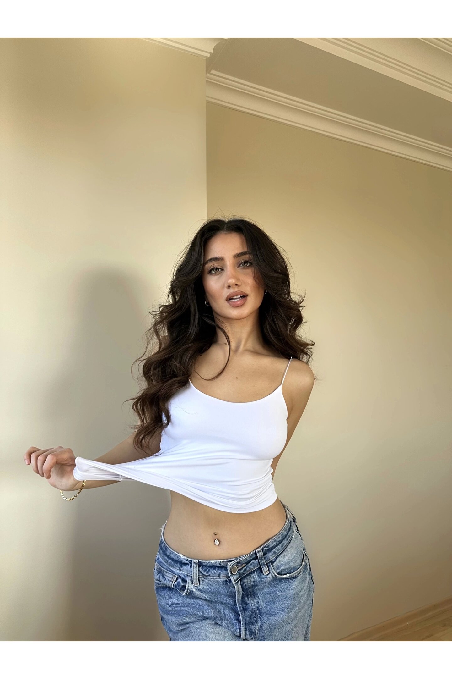 Beyaz ZRA Model Poliamid İp Askı Bluz
