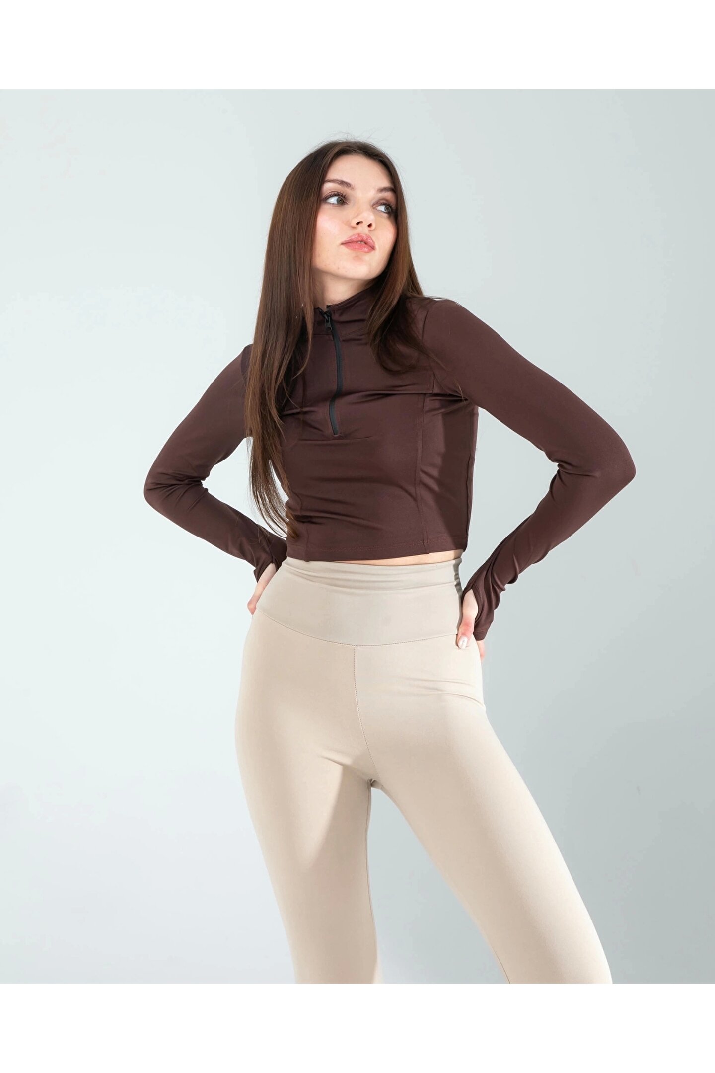 KarşıVitrin Kahve Renkli Parmak Geçmeli Spor Body