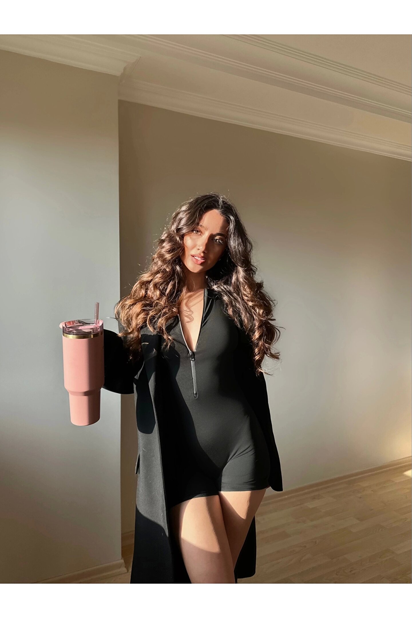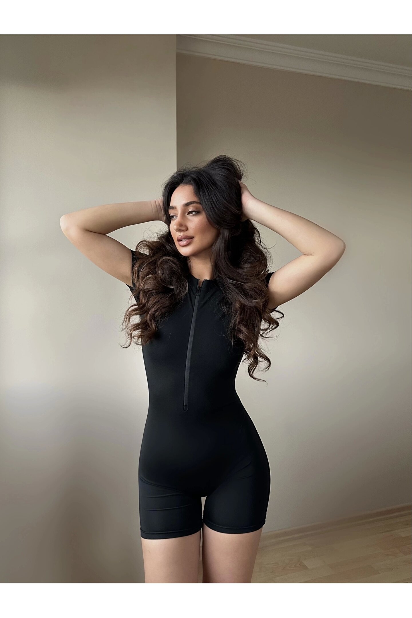 Siyah Fermuarlı Şort Tulum