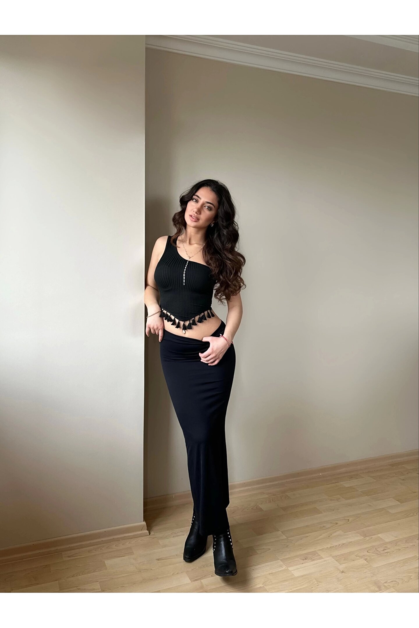 Siyah Püskül Detay Bluz