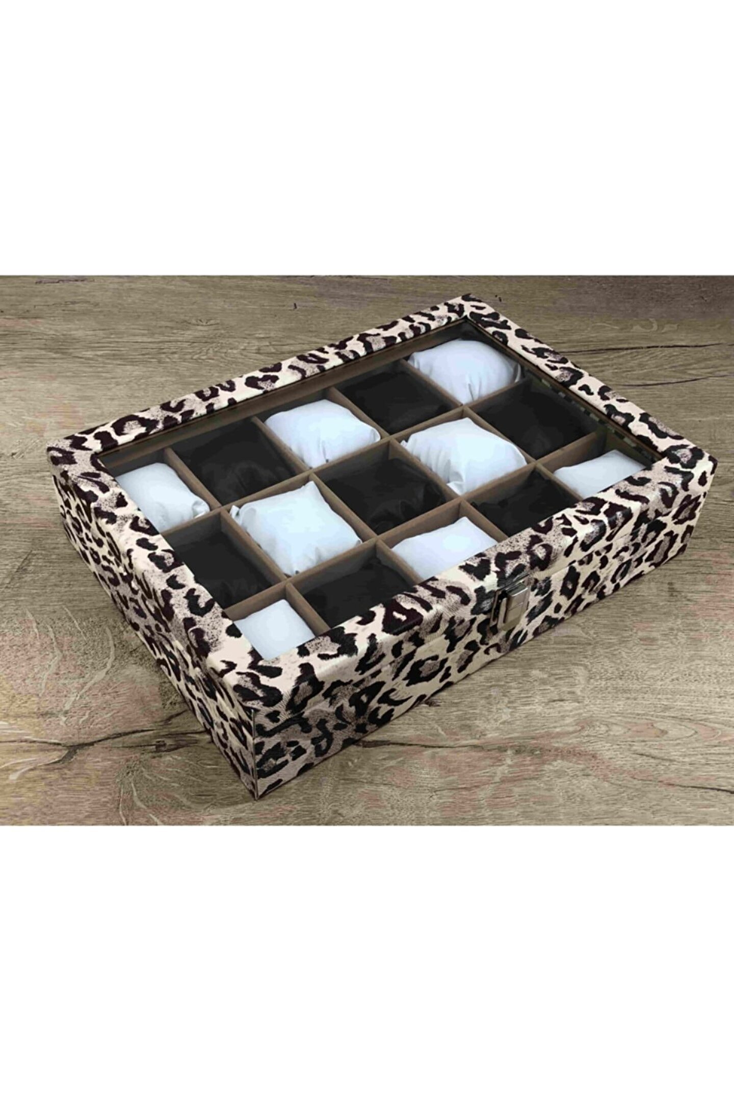 Kelepir Fırsatlar 15 Büyük Boy Kol Saati Sığabilen Leopar Desenli Kaplama Saat Takı Mücevher Kutusu