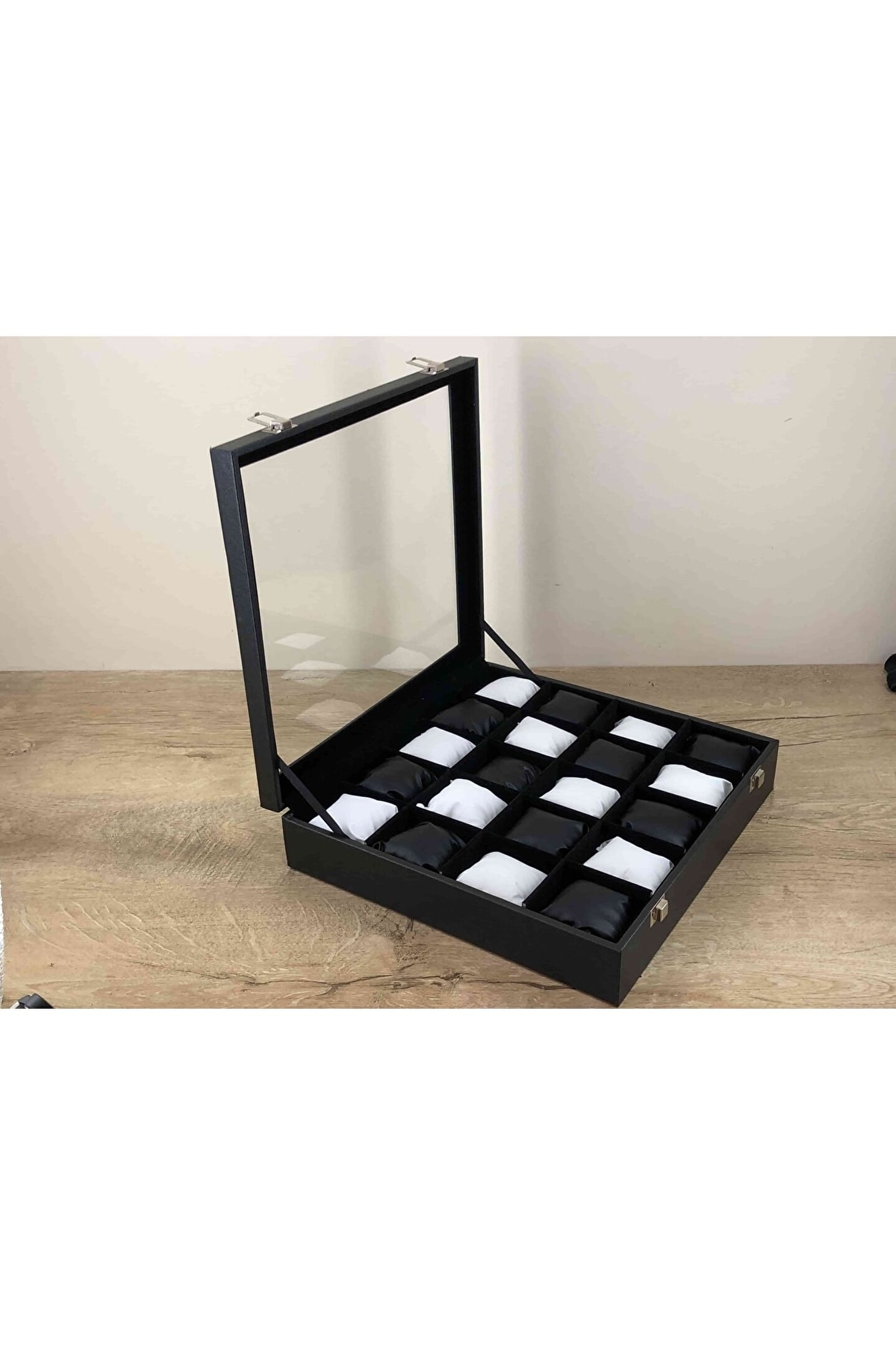 - Ahşap malzeme üzerine deri kaplama ile zenginleştirilmiş, şık ve dayanıklı bir tasarıma sahip; - İç kısmında kadife dokusuyla lüks bir görünüm sunan yastıklama özelliği; - 20 gözlü yapısı sayesinde saatleriniz, takılarınız ve diğer değerli eşyalarınız için geniş saklama alanı sağlar; - Siyah ve beyaz renk kombinasyonu ile modern ve zarif bir dekoratif kutu alternatifi sunar;