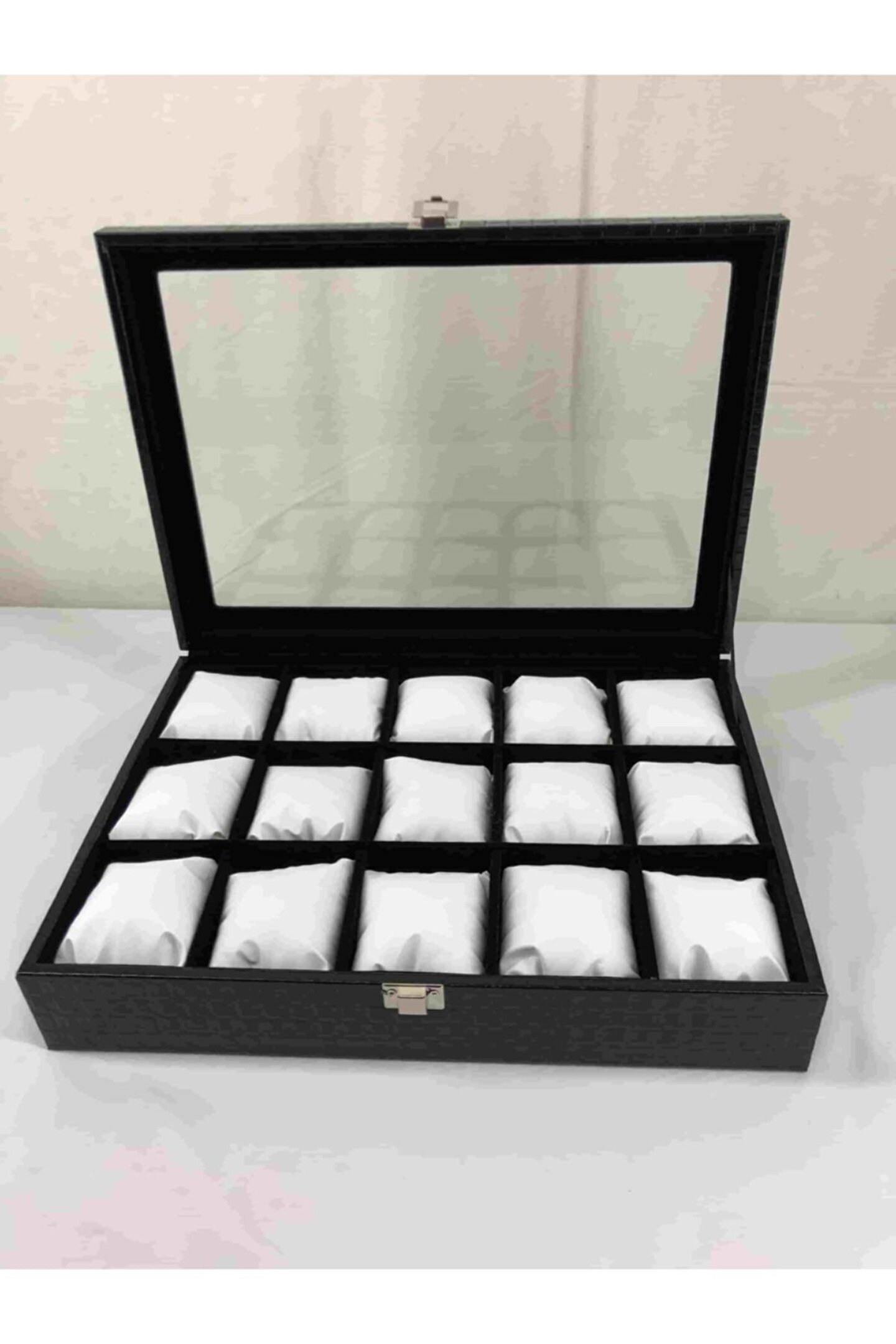 Kelepir Fırsatlar Siyah Parlak Rugan Kaplamalı 15 Kol Saati Kapasiteli Portatif Saklama Kutusu