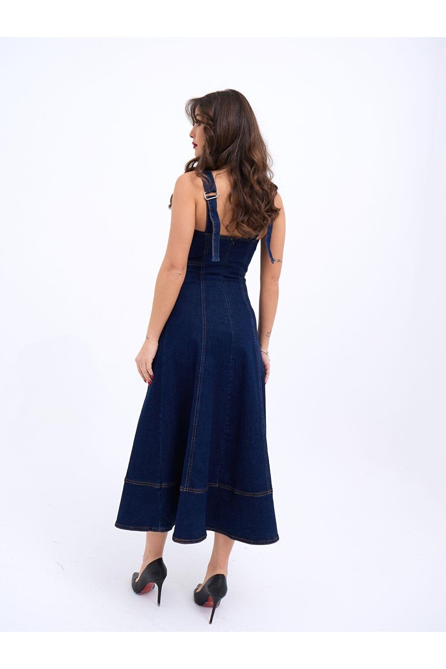 kendim fashion 7090 KOT ELBİSE-MAVİ