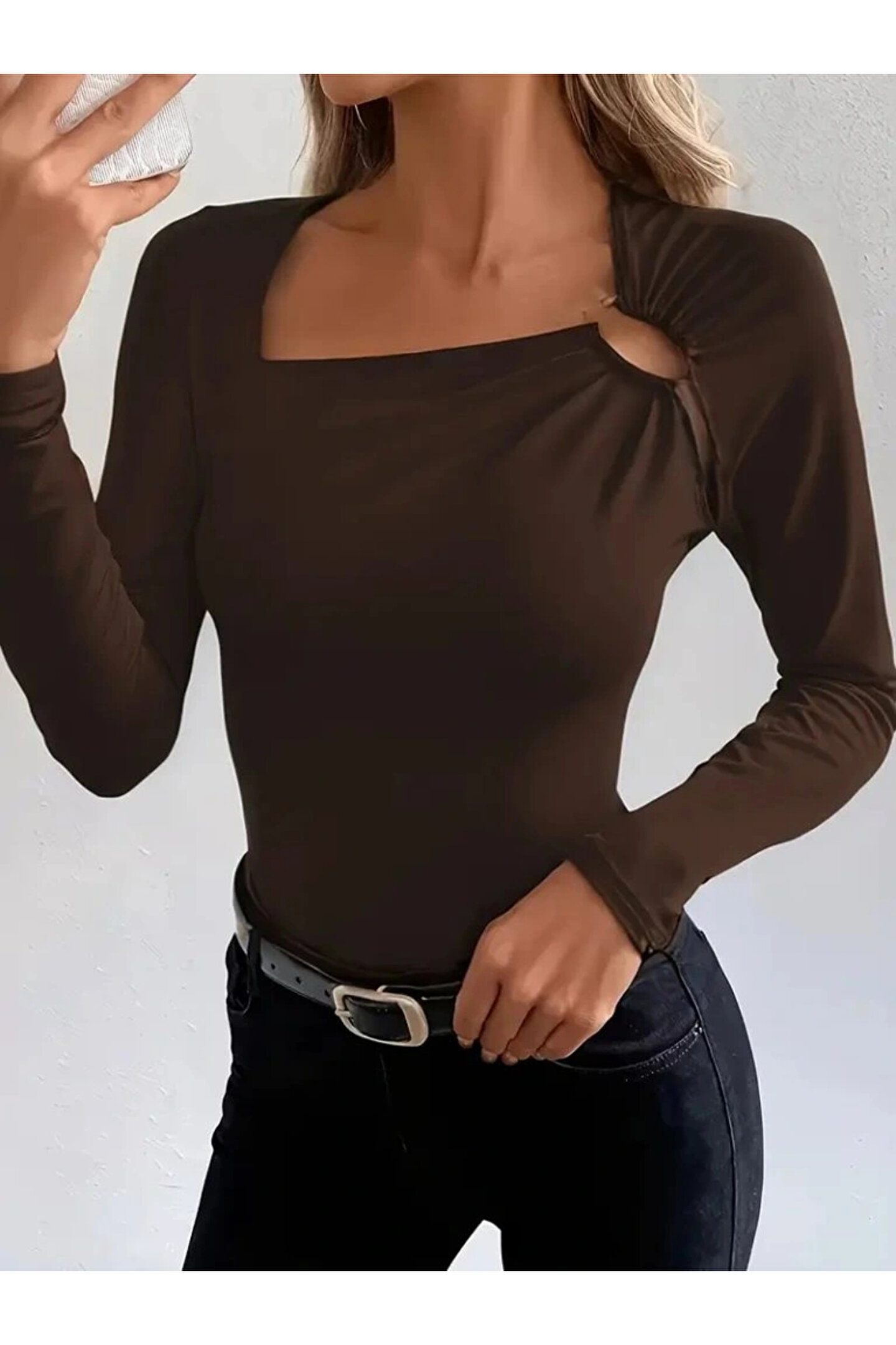 KentselBazaar Kadın Uzun Kollu Yakadan Halka Detaylı Viskon Bluz