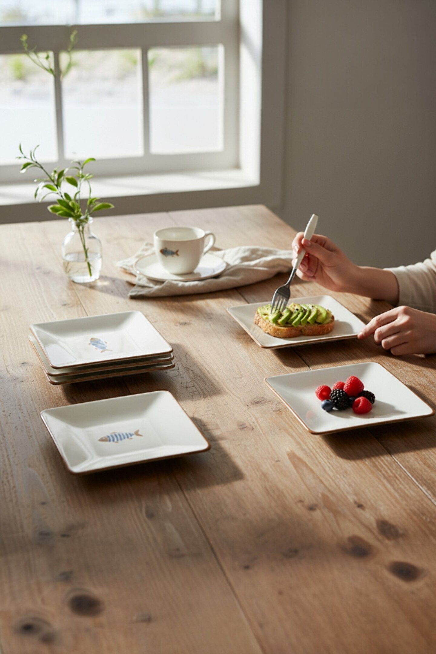 Keramika Balık Desenli Kare Siera 20cm Pasta Tabağı 6 Adet