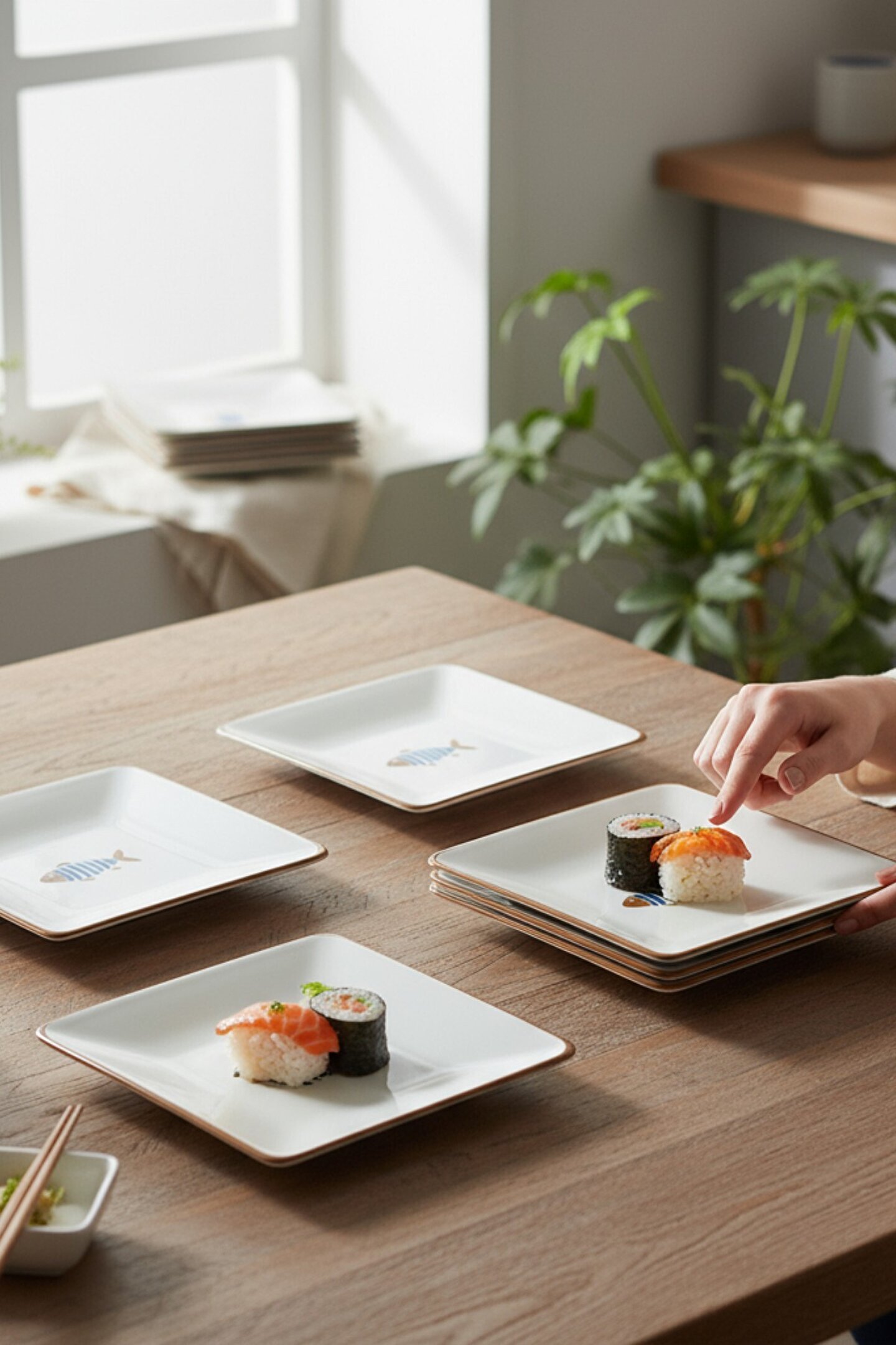 Balık Desenli Kare Siera 20cm Pasta Tabağı 6 Adet
