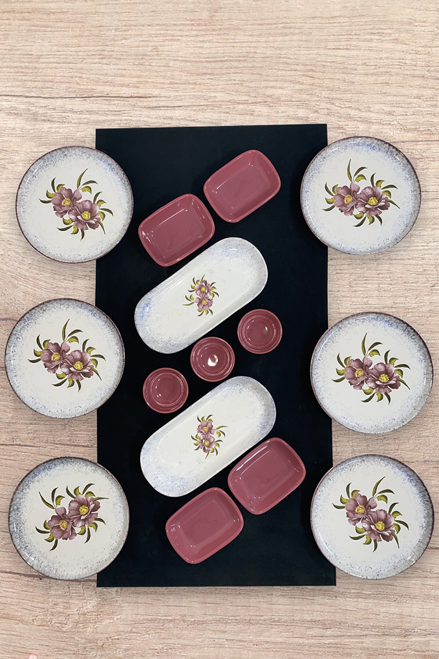 - 6 kişilik geniş kapasitesiyle aile ve arkadaşlarınızla keyifli kahvaltılar için ideal; - Yuvarlak tasarımı ile modern ve şık bir görünüm sunar, sofralarınıza estetik bir dokunuş katar; - Stoneware materyali sayesinde dayanıklılık ve uzun ömürlü kullanım vaat eder; - Çiçekli tema ve stil ile sofralarınıza bahar tazeliği getirir, göz alıcı bir atmosfer oluşturur; - Mikrodalgada güvenle kullanılabilme özelliği ile pratiklik sağlar, sıcak yemeklerinizi hızlıca ısıtmanızı mümkün kılar;
