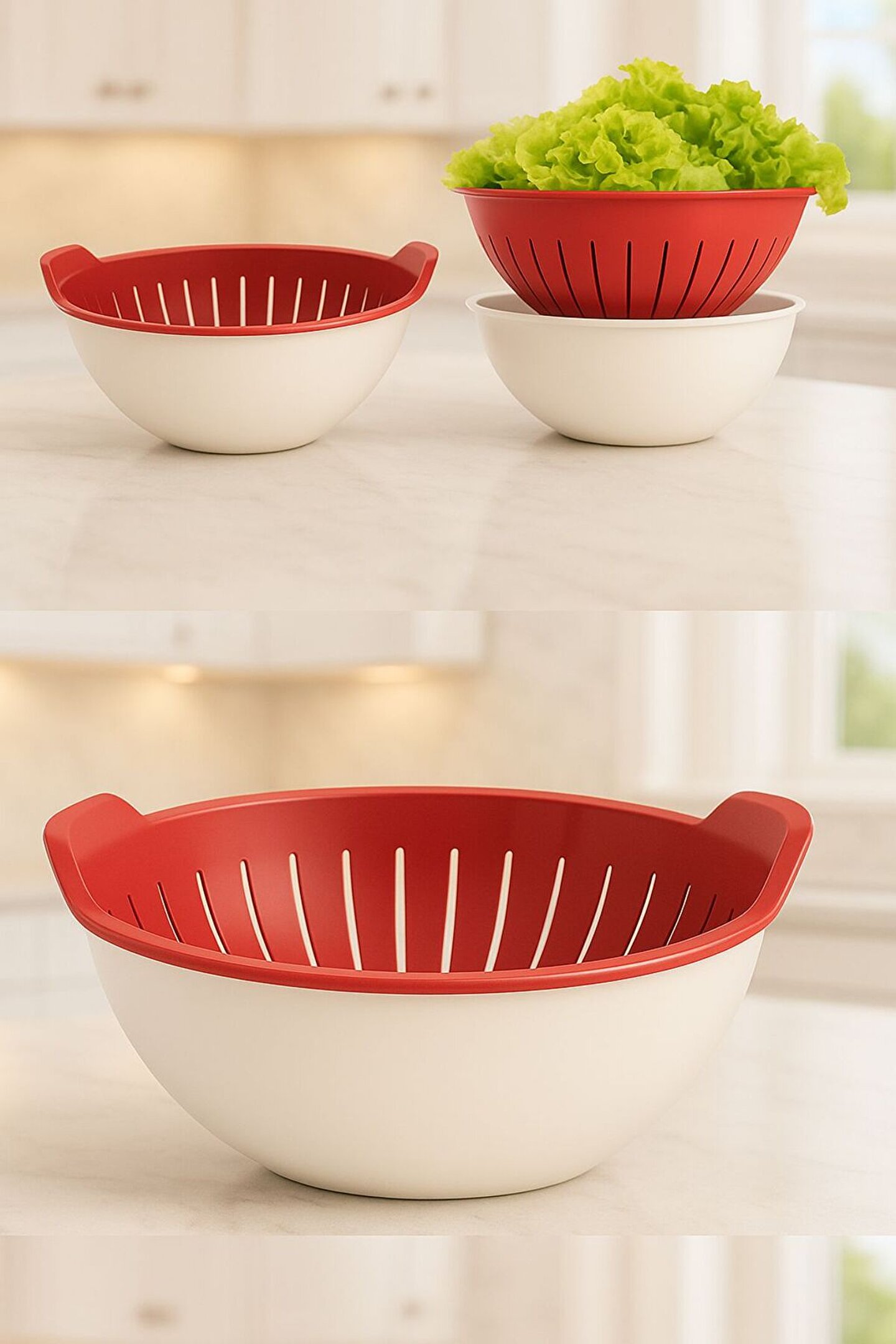 Kırmızı Beyaz Home 3 Lt Kaseli Süzgeç – Gıdaya Uygun, BPA İçermez, Mikrodalga ve Bulaşık Makinesi Uyumlu -KIRMIZI