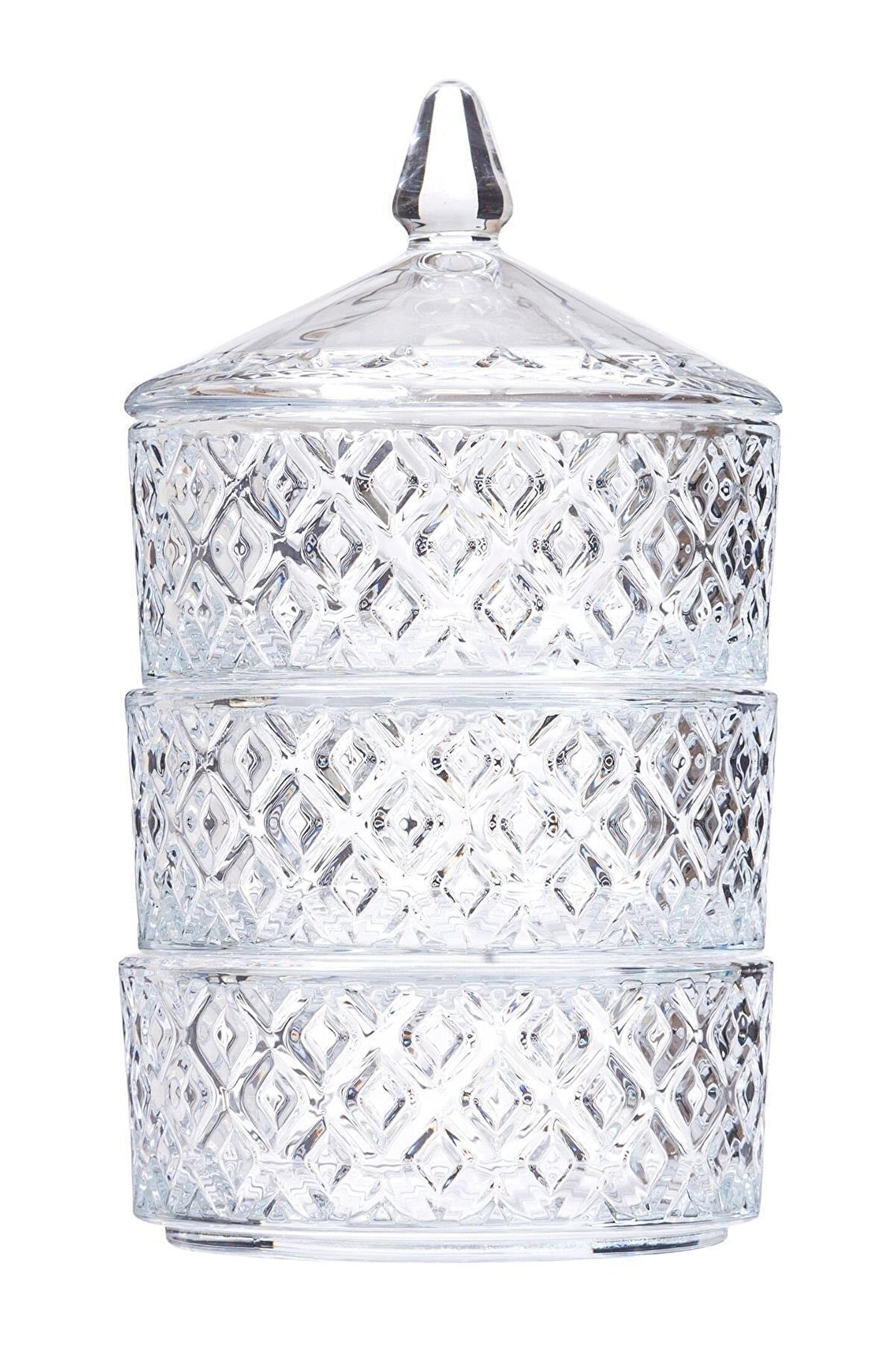 Kırmızı Beyaz Home Kristal Lüx Cam 3 Katlı Kurabiyelik 28x12 Cm