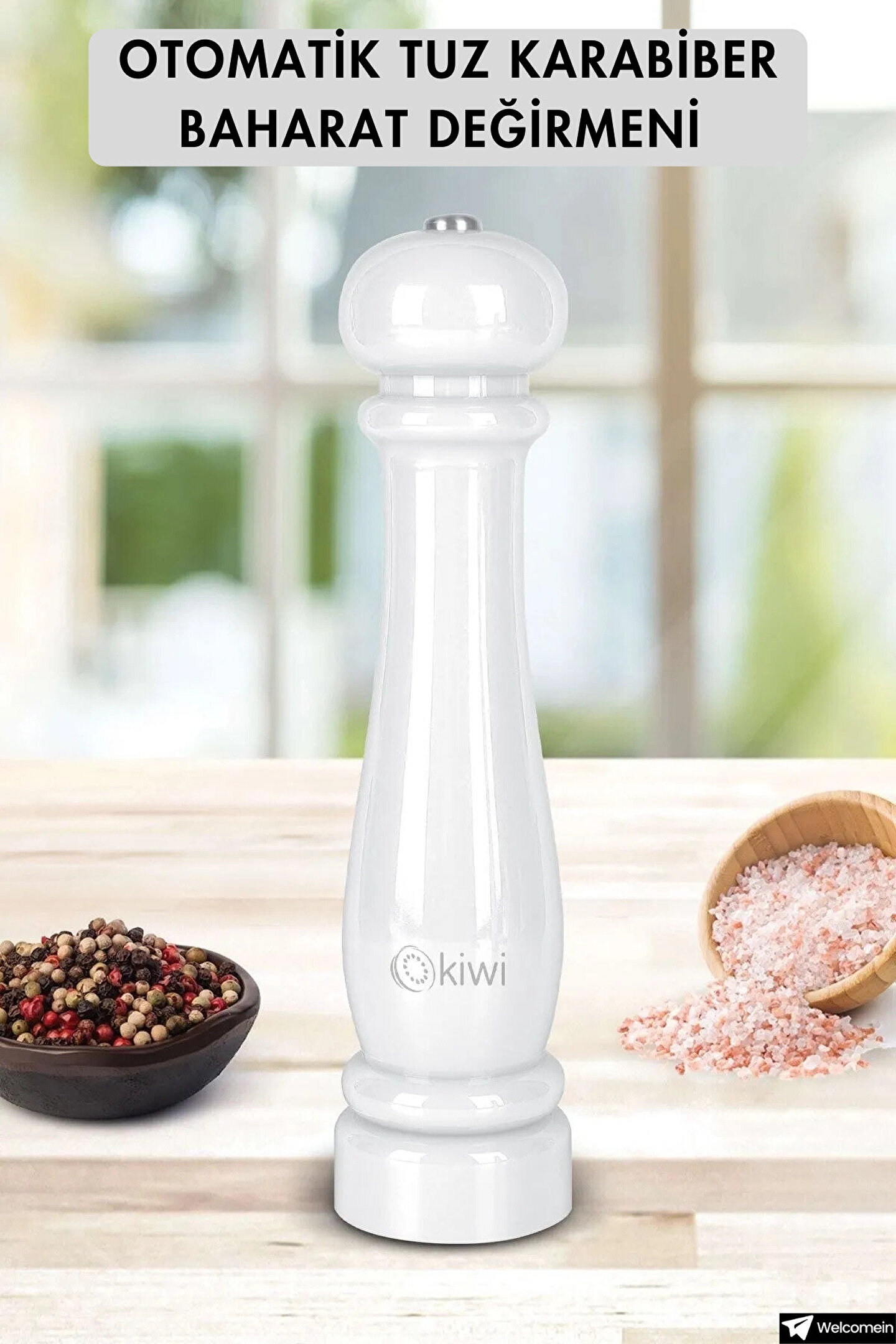 Pilli Seramik Otomatik Ayarlanabilir Tuz Karabiber Değirmeni Kuru Baharat Öğütücü (HEDİYELİK)