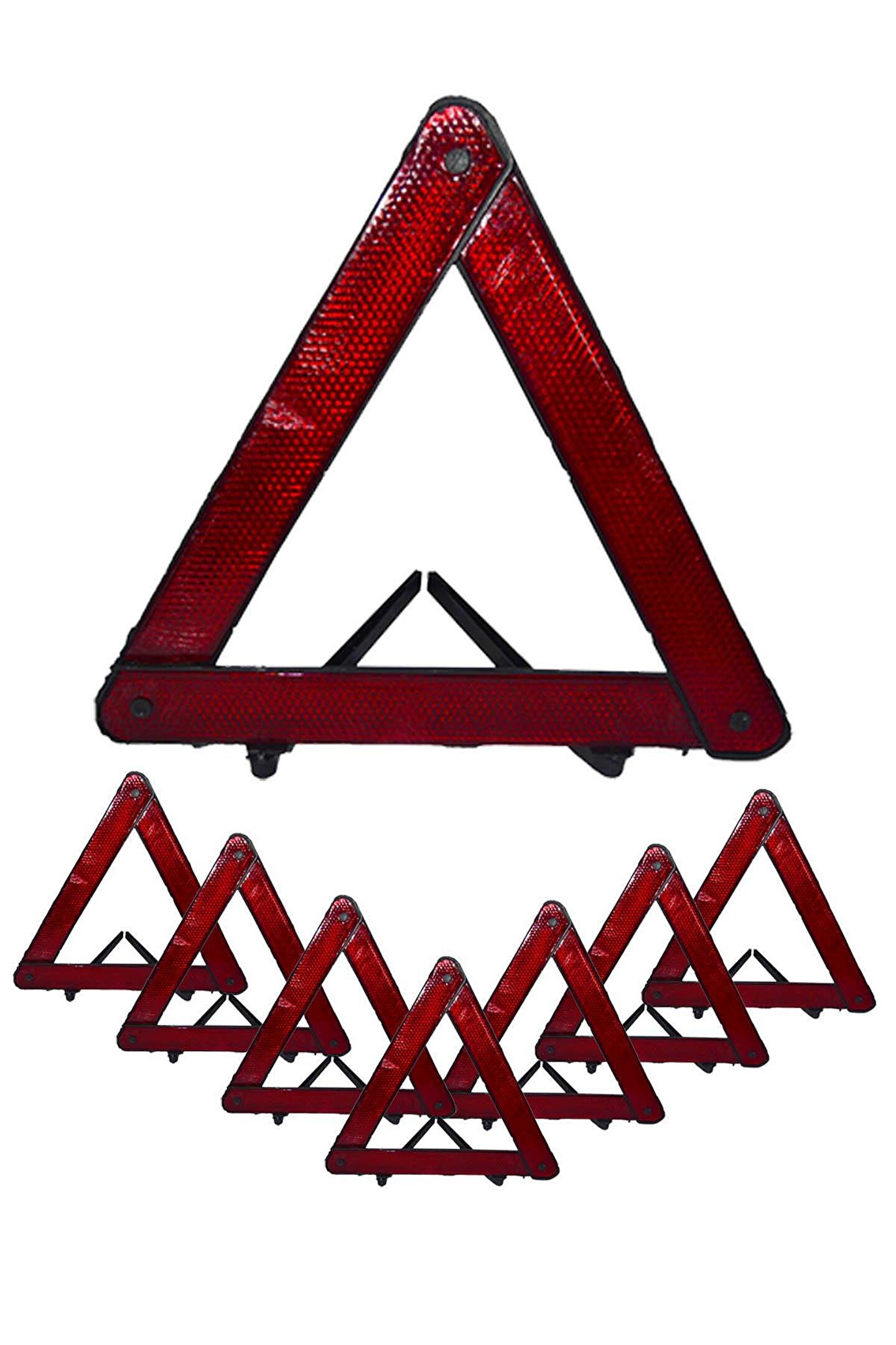 Üçgen Reflektör Ekonomik Muayenede trafik setleri için iki Adet gerekmektedir; Ekonomik amaçlı üretilmiştir; Plastik ayaklıdır; 8 adet olarak gönderilmektedir;