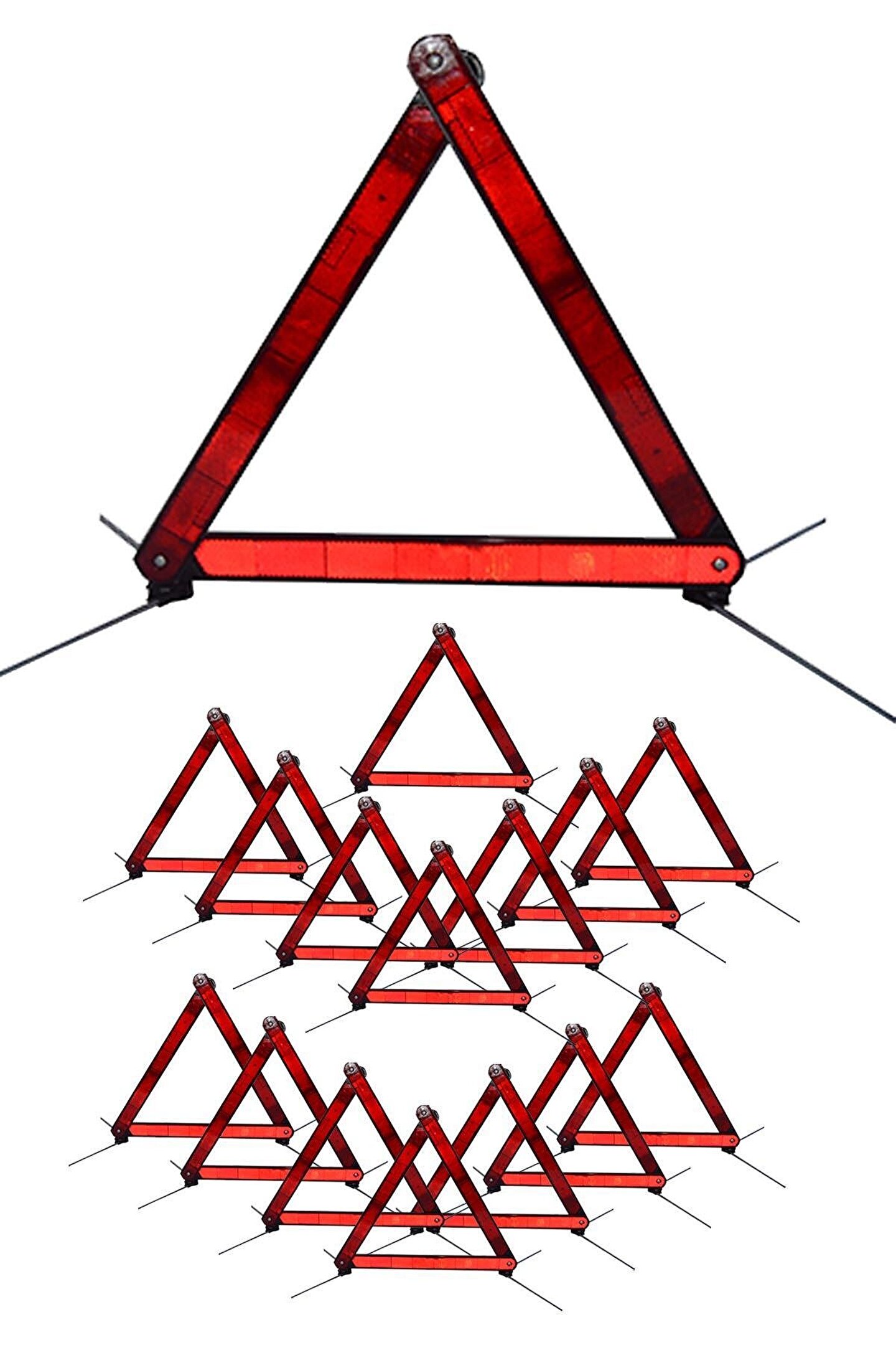 Üçgen Reflektör Seti Metal Ayaklı Katlanabilir Araç İkaz Uyarı 16 Adet