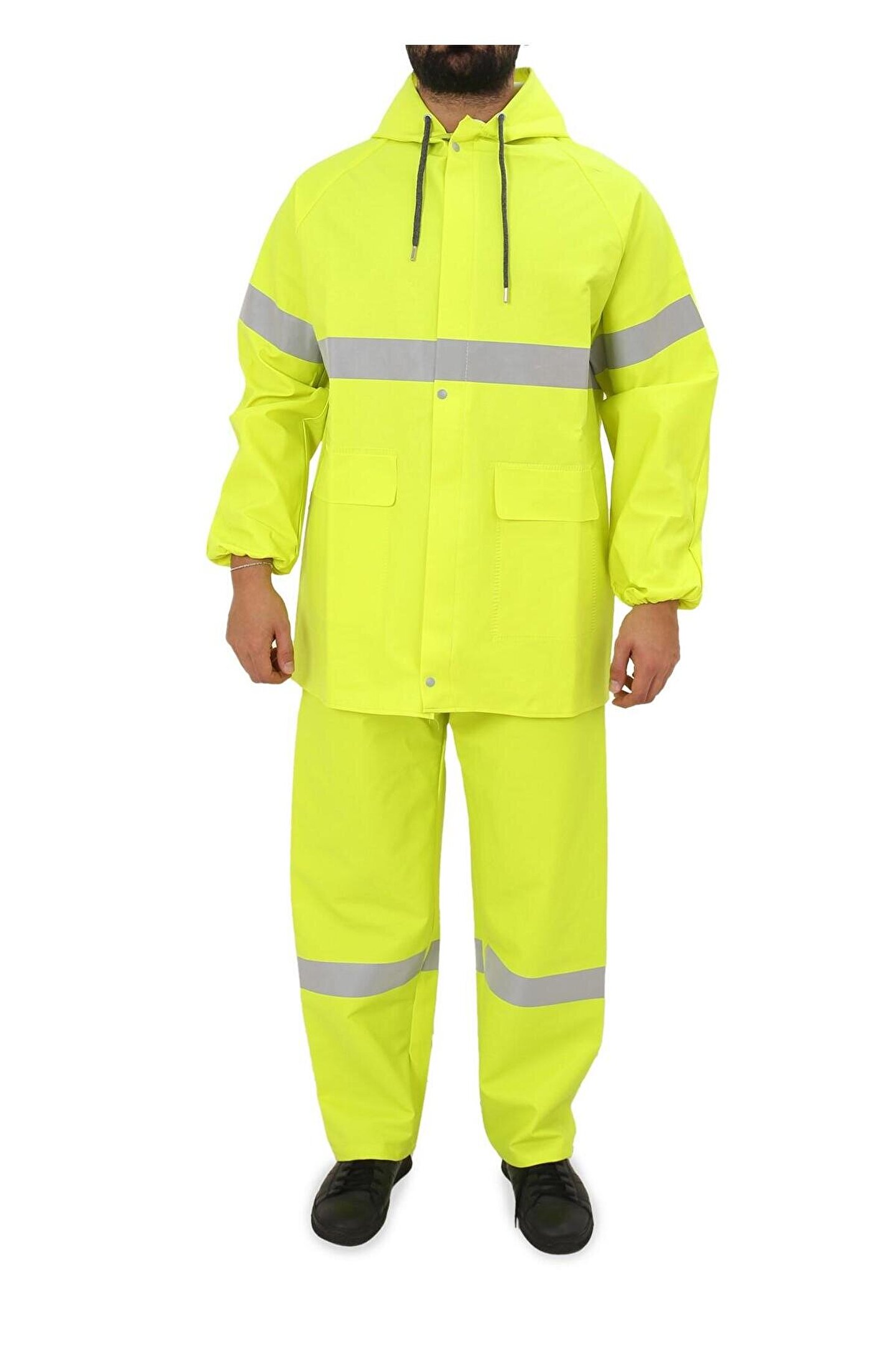 Yüksek Görünümlü Reflektörlü Dikişsiz Fermuarlı Yağmurluk Alt Üst Takım Pvc Su Geçirmez