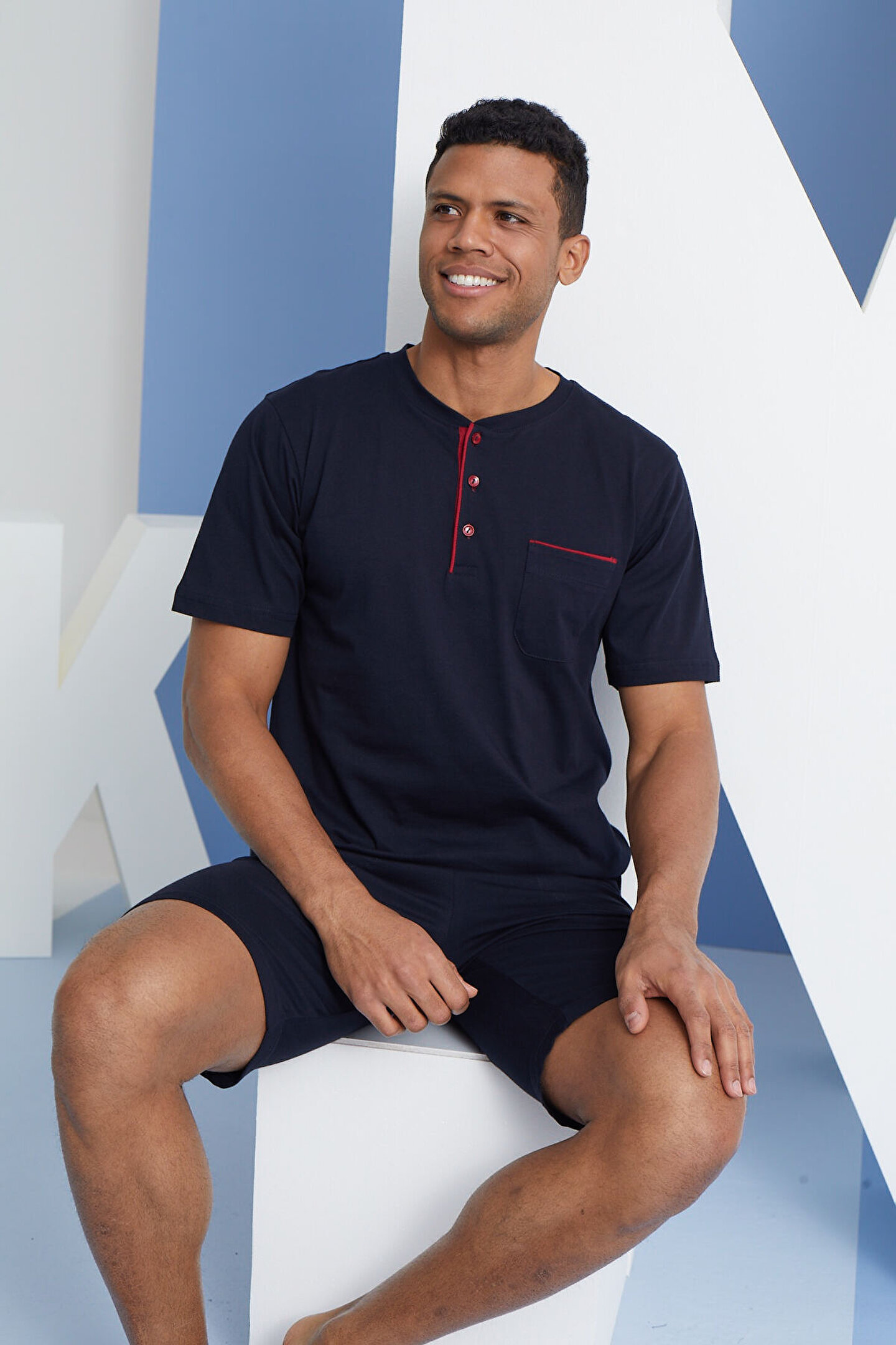 Rahat kesimi ile günlük kullanım için ideal olan midi yaka şortlu pijama takımı, tüm gün konfor sunar.; Açık paça tasarımı ile bacaklarınızın serin kalmasına yardımcı olurken, kısa paçaları rahatlıkla hareket etmenizi sağlar.; Kısa kol ve normal bel yapısı, hem evde dinlenirken hem de hafif egzersizler yaparken size uyum sağlar.; Homewear olarak tasarlanmış bu pijama takımı, ev ortamında şıklığı ve rahatlığı bir arada sunar.; İpliği boyalı olması renklerin canlılığını korumasına yardımcı olurken, tüm yaş gruplarına uygun olarak tasarlanmıştır.;