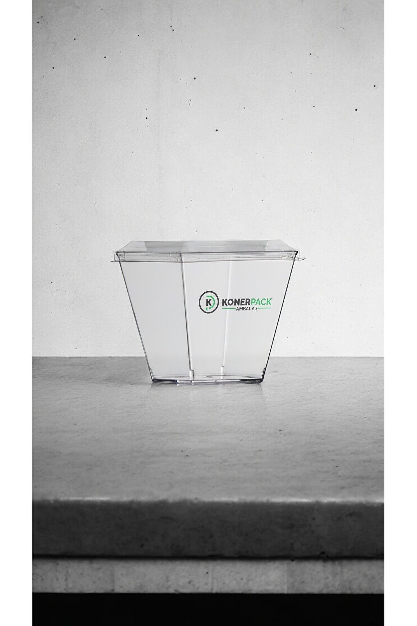 Prizma Tatlı Kasesi 100 Adet Kapak Dahil,Şeffaf Renk Magnolya kasesi,Mika Sert Plastik Tatlı Kasesi