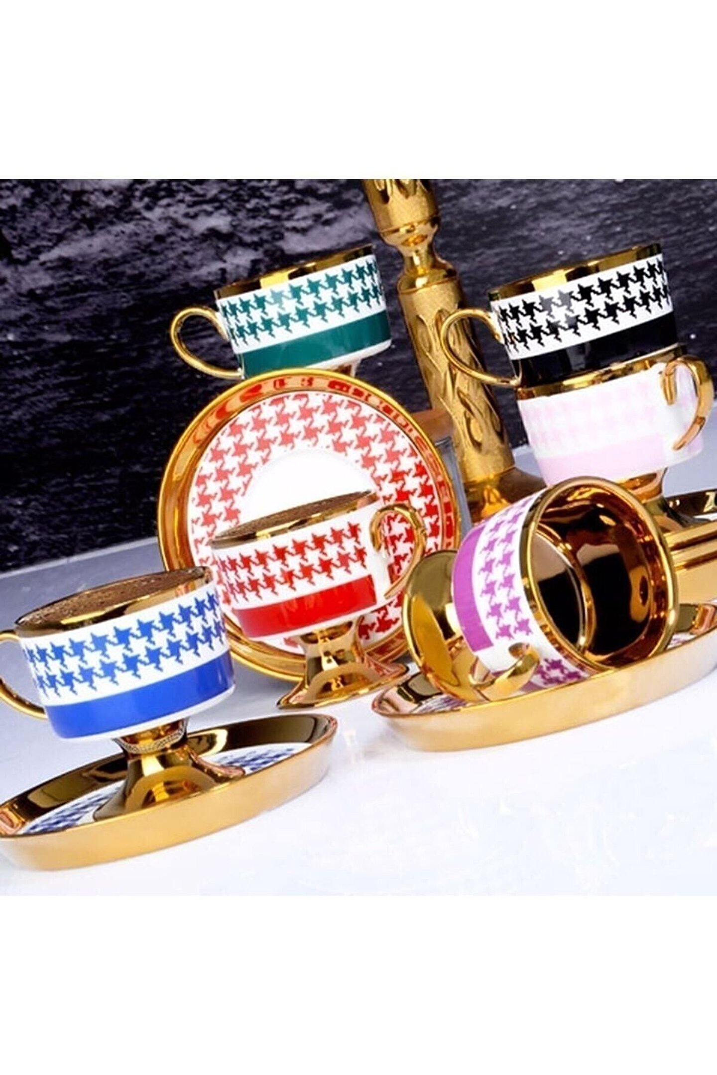 Porselen malzemesi sayesinde uzun ömürlü ve dayanıklı kullanım sunar; 6 kişilik set, arkadaşlarınız veya ailenizle keyifli kahve sohbetleri için idealdir; Modern tasarımı ile mutfak dekorasyonunuza şık bir dokunuş katar;