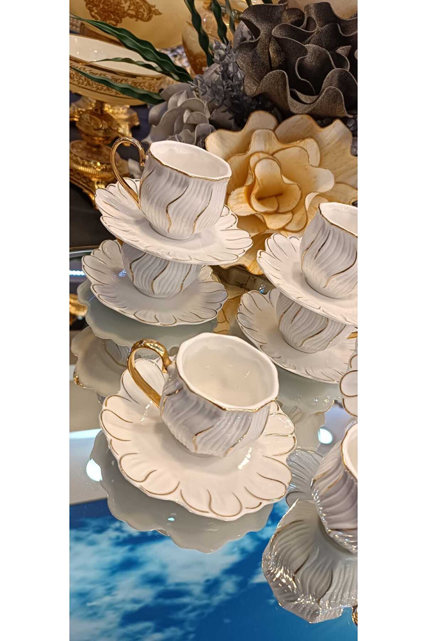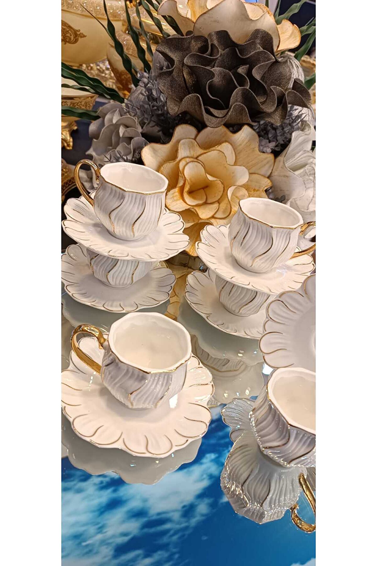 - Modern tasarımıyla mutfaklarınıza şıklık katacak 12+ parçadan oluşan porselen kahve fincan takımı.; - Her bir fincan 75 ml hacmiyle ideal kahve keyfi sunar ve 6 kişilik set olarak tasarlanmıştır.; - Gıda temasında güvenli kullanım için "Gıda Temas Sembolü" ile belirtilmiştir; böylece sağlığınızı düşünerek tasarlanmıştır.; - Bulaşık makinesinde kolayca yıkanabilir olması, temizlik sürecini pratik ve zahmetsiz hale getirir.; - CN menşei olan bu ürün, kaliteli malzemesiyle uzun ömürlü kullanım vaat eder.;