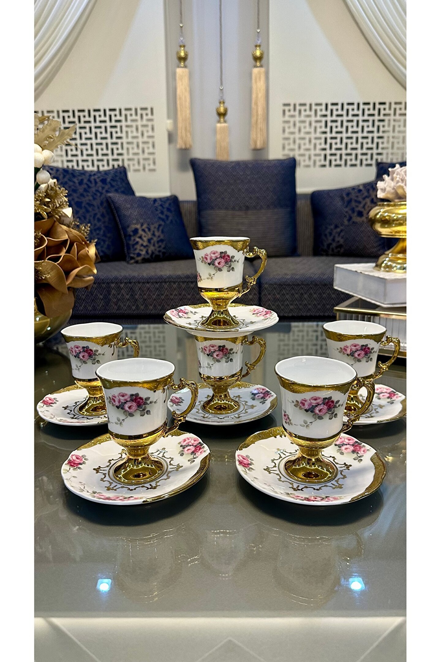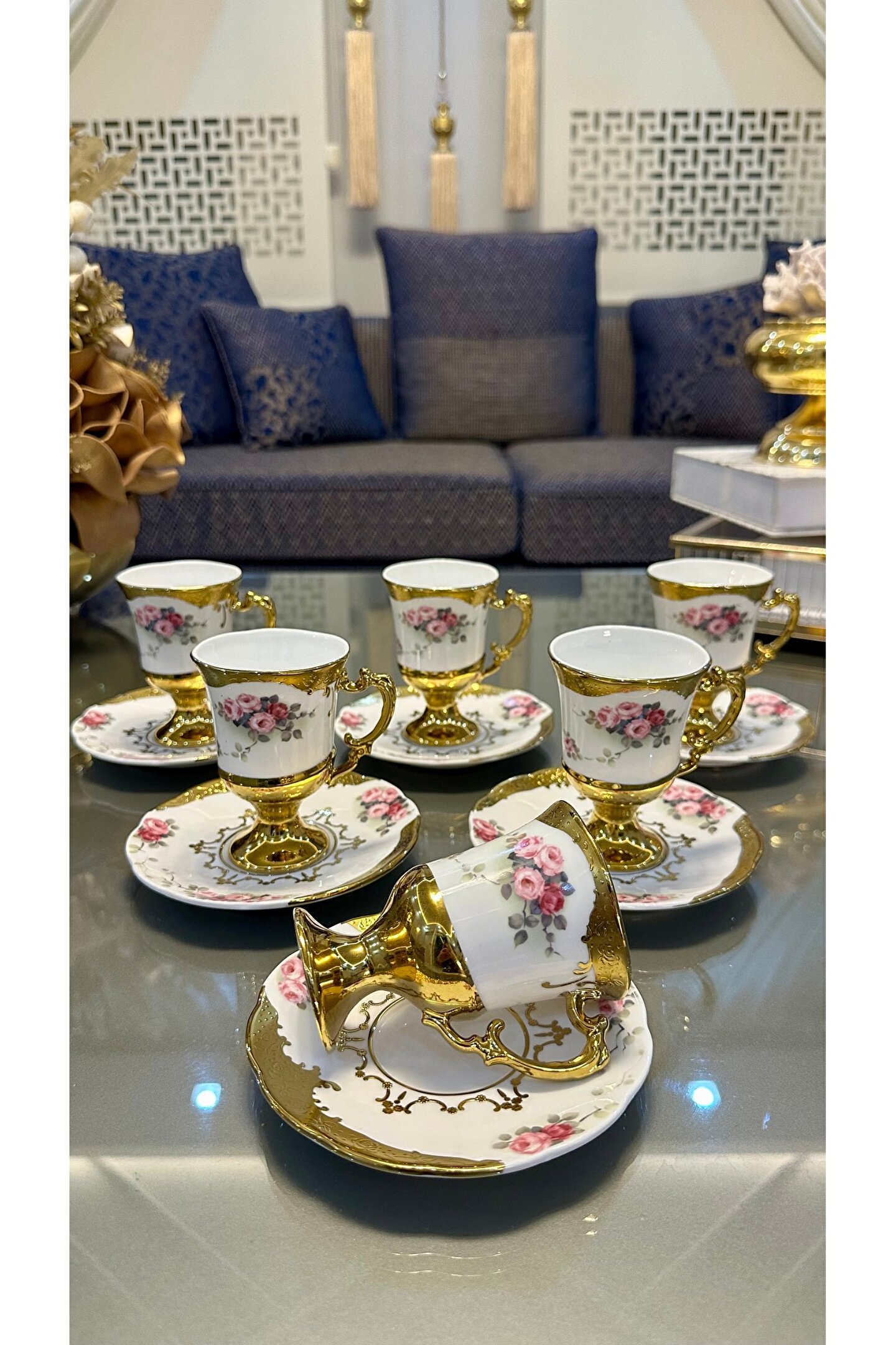 6 Kişilik 12 Parça Ayaklı Gold Güllü 1.Kalite Kahve Sunumlarınıza Şıklık Katacak Kahve Fincan Takımı Uzun Ömürlü Olması İçin Elde Yıkamayı Tavsiye Ediyoruz