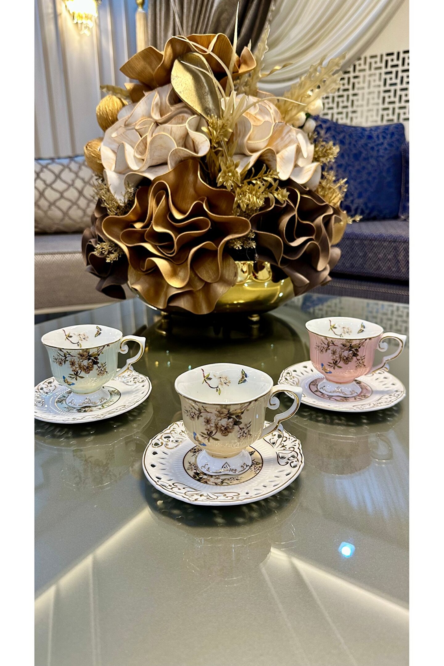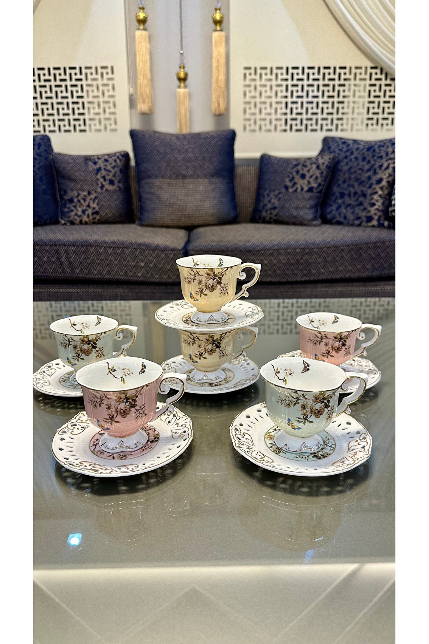 6 Kişilik 12 Parça 3 Renkten Oluşan Güllü Ayaklı 1.Kalite Kahve Fincan Takımı Seti 90 ml Almaktadır Uzun Ömürlü Olması İçin Elde Yıkamayı Tavsiye Ediyoruz